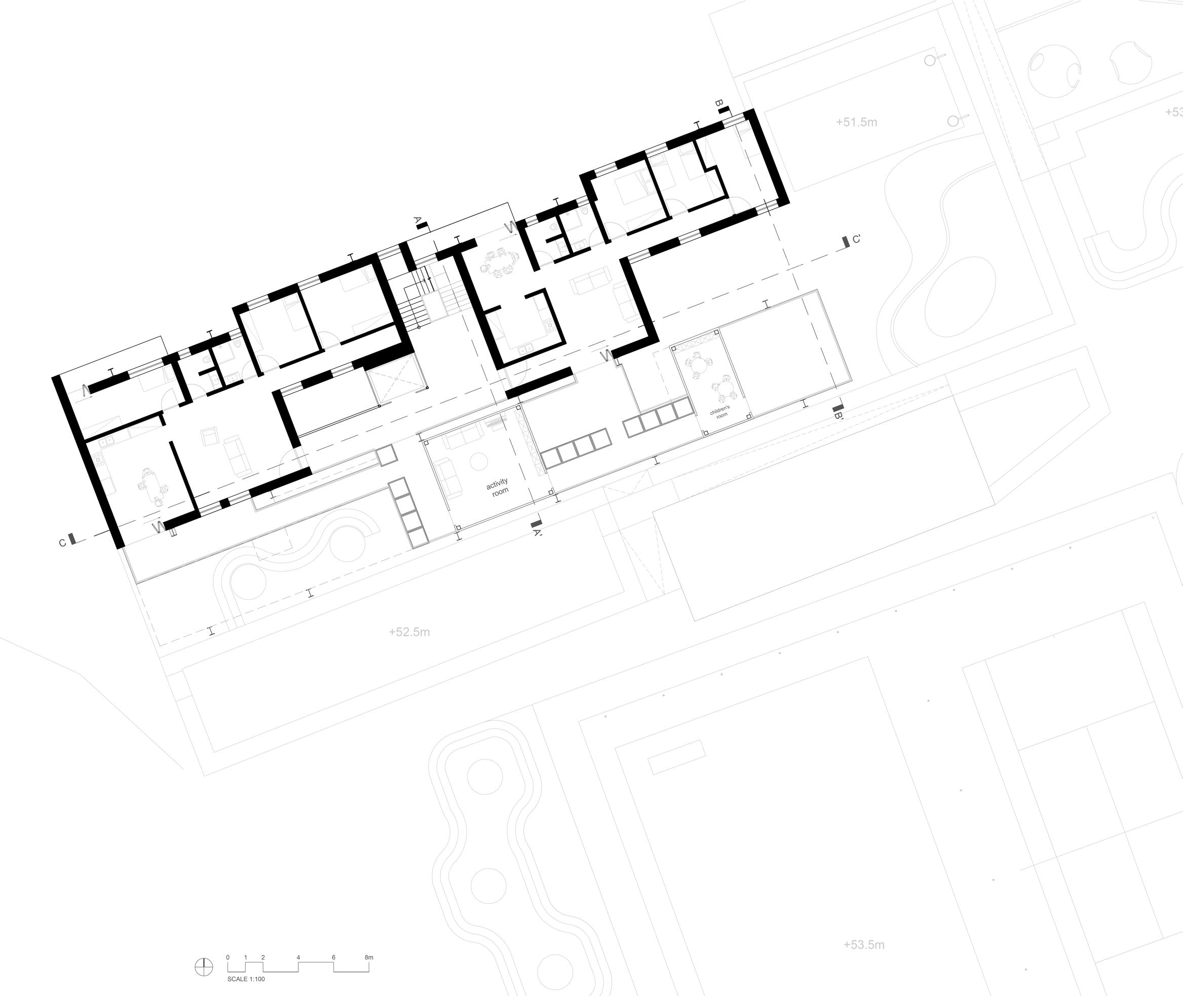 In this project, there was a focus on a housing typology for elderly to be housed in the shared flat, and young families with children in the unitised apartments.