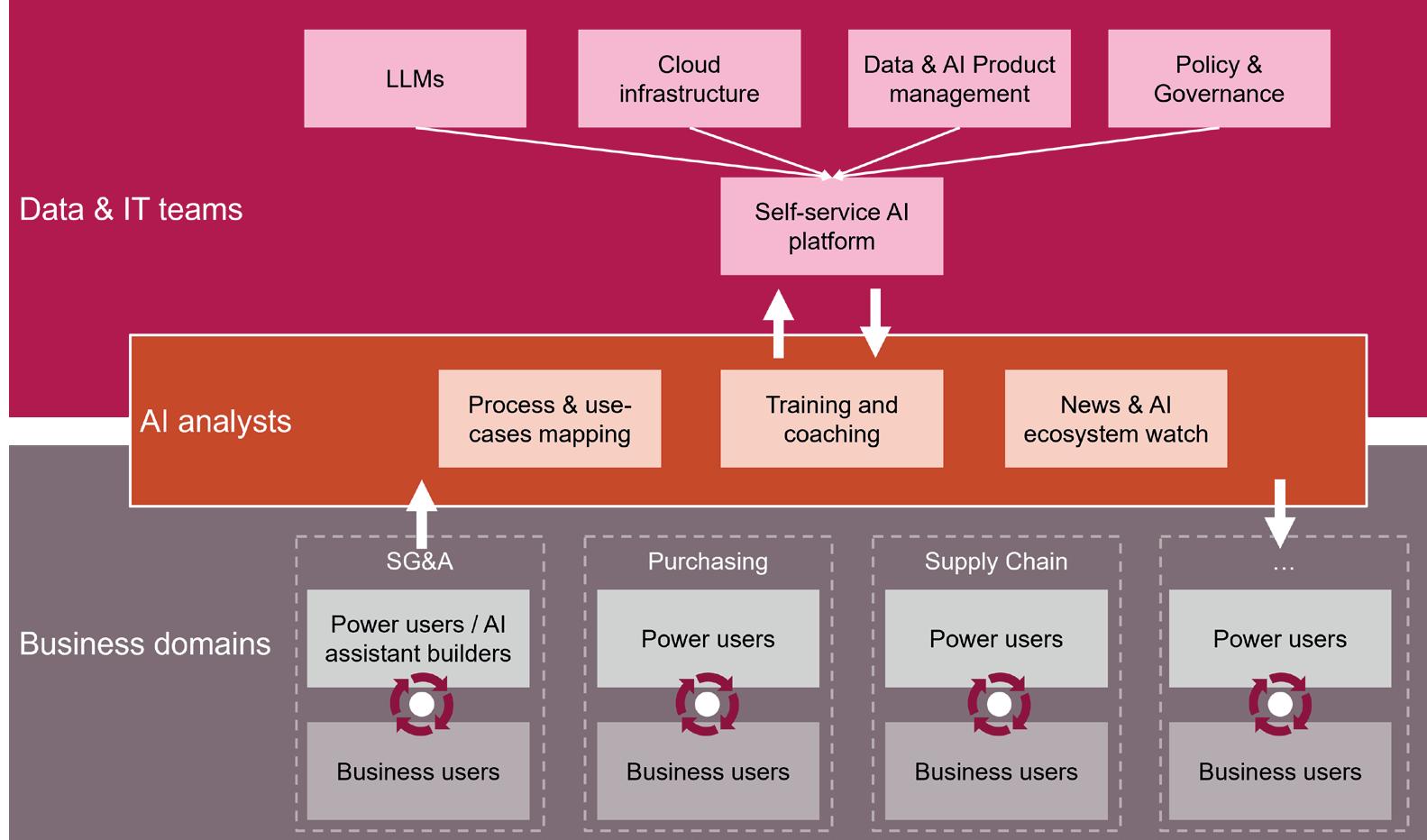 • Self-service: to be truly transformative and drive adoption at every level of the organization, business users should be empowered to create and configure their own assistants, and not rely on the limited bandwidth of a central development team.