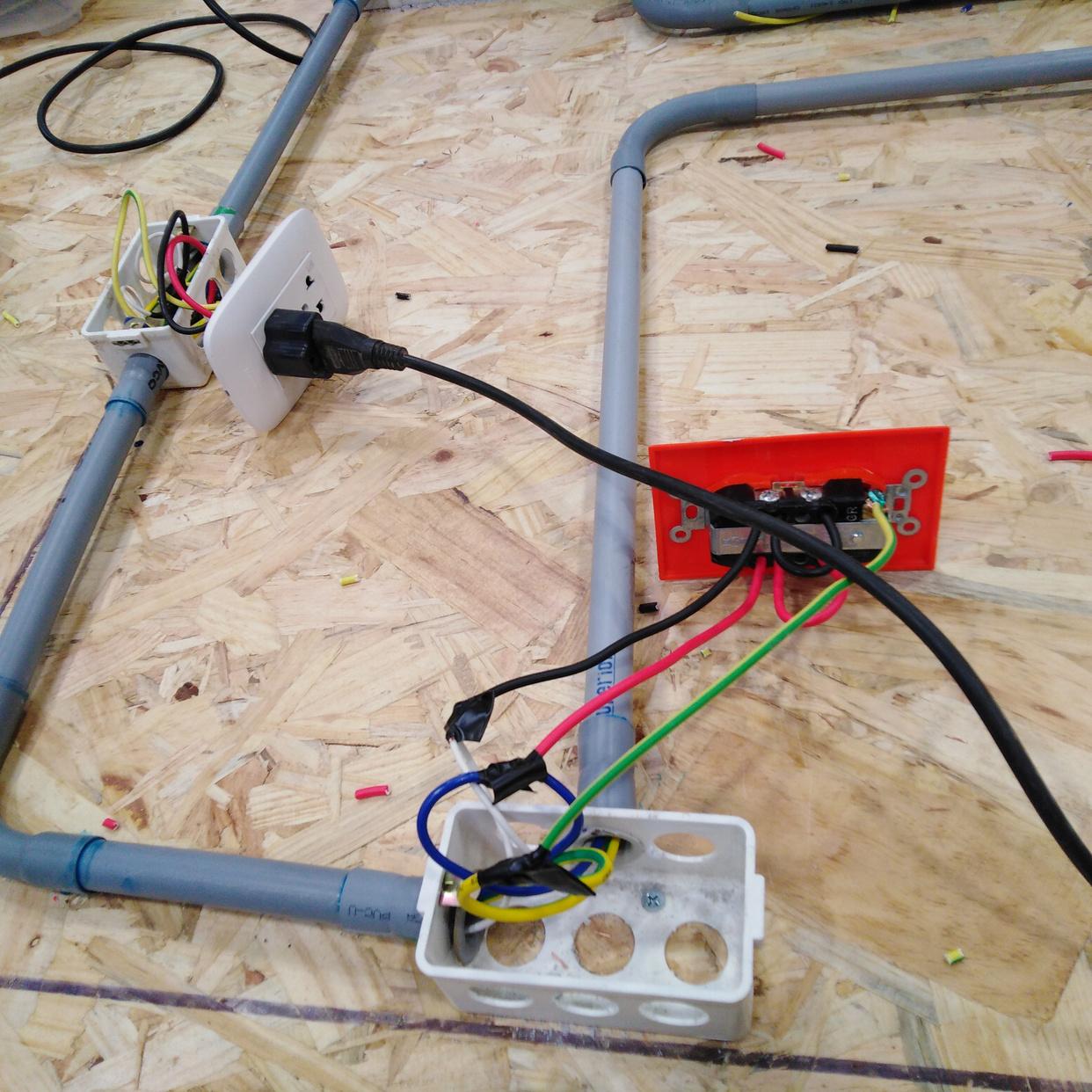 Se conectan los tomacorrientes el cableado debe pasar por todas las cajas ortogonales para evitar cortes, más empalmes que puedan ocasionar fugas y cortos circuitos