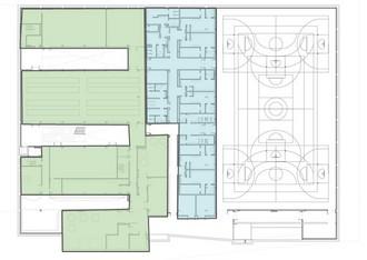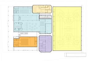 En la planta sótano se encuentra la planta deportiva, están la pista para el polideportivo, sala de esgrima, los gimnasios, talleres de danza y el rocódromo, así también como los espacios que están destinados a las instalaciones generales correspondientes del edificio