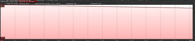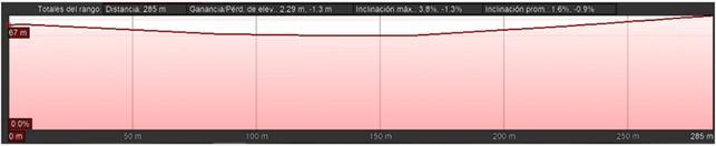 Cuenta con una inclinación máxima de 3.8% y una inclinación promedio de 1.6%