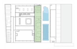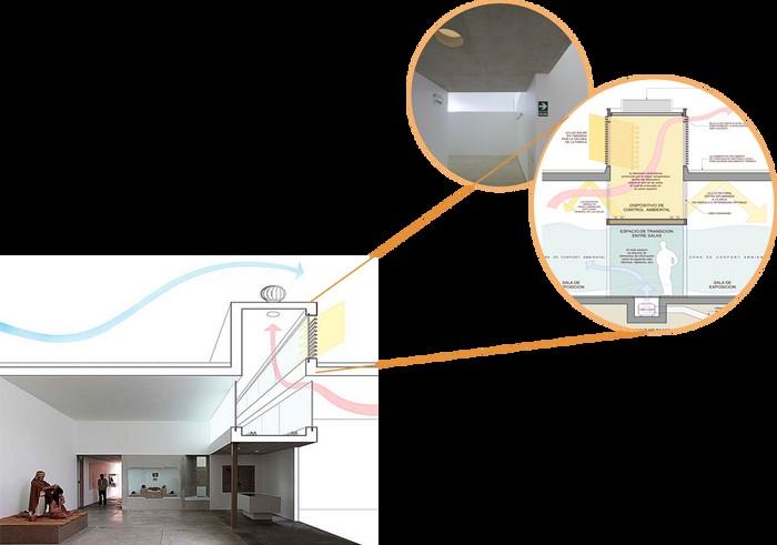 La separación entre estos edificios asegura una correcta ventilación e iluminación de los espacios exteriores e interiores. Cada uno de ellos cuenta con su propia cubierta que se acerca a la de los otros, dejando ranuras por las cuales entra la luz evitando una incidencia solar directa en sus alzados interiores