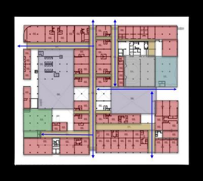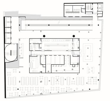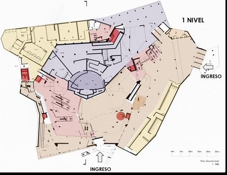 Se emplazaron áreas de acceso más restringido, coordinación, planificación y servicios.