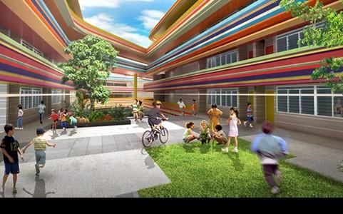 • El proyecto incluyó también zonas de áreas verdes, instalaciones deportivas cubiertas y múltiples ambientes de juegos al aire libre