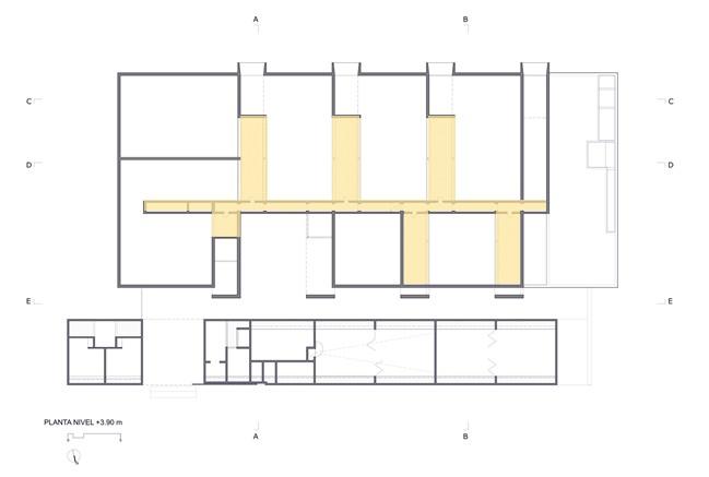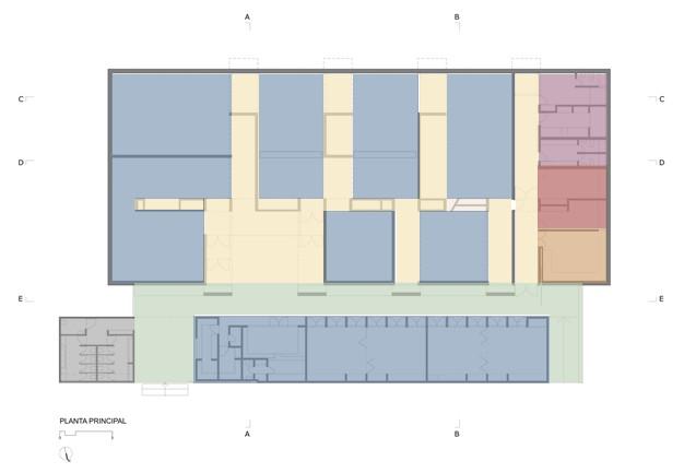 Su planteamiento se dio con un eje central el cual reparte hacia las distintas aulas el cual tiene ingresos principales como secundarios
