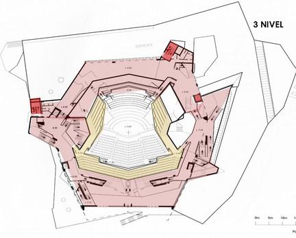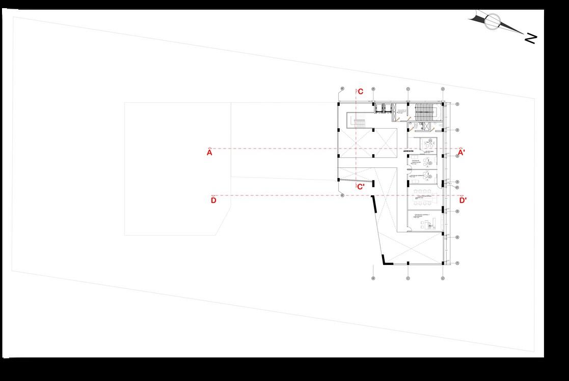 En los niveles superiores se observa el desarrollo de algunos locales destinados para oficinas, el Auditorio, la Sala de comisiones, esto del lado del complejo, mientras que del lado de la Torre se observa únicamente el uso destinado a oficinas.