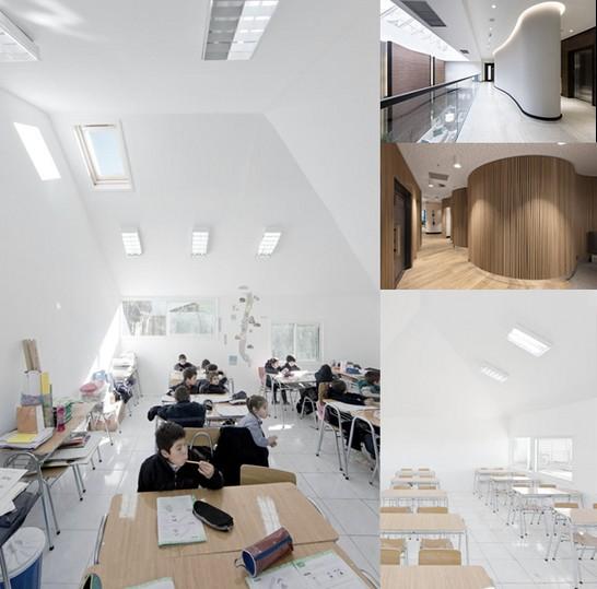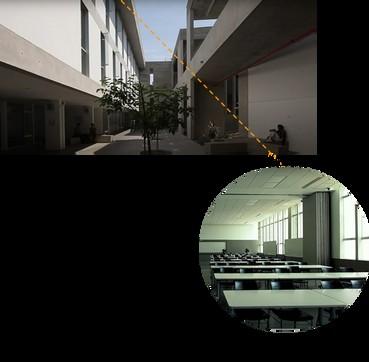 Se consideraron dos objetivos al proyectar: Los lugares del nuevo aprendizaje, privilegiando los encuentros informales y estimulando el estudio y el intercambio de conocimientos fuera de las aulas.