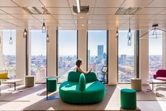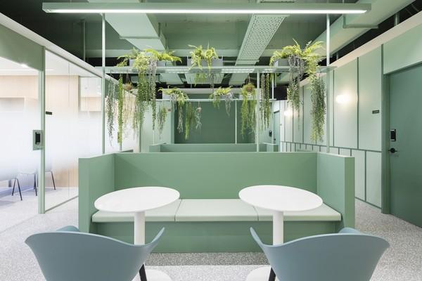 Se generan espacios coworking, en los que se introducen elementos como el cromatismo y el confort acústico, que mejoran la comunicación y el estado de ánimo de los empleados, generando un espacio de trabajo más distendido.