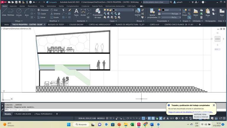 En el primer nivel se observa la relación de todo el conjunto, desde la Torre del Centro Cívico hasta su conexión con los espacios públicos, y su relación con los diferentes espacios proyectados para comercio.