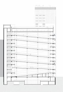 El edificio se plantea a partir de una doble estrategia estructural, una modalidad convencional de bases y columnas para el soporte del subsuelo y un sistema de cuatro pilas que sostienen una grilla superior.