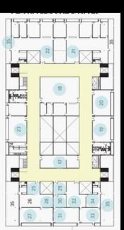 Ya en los pisos de más altura, se ven los usos del Hotel y la Torre, uno está destinado a habitaciones y el otro destinado para el uso de oficinas. Inicialmente La Torre fue planteada para albergar una vida comercial no solo para cubrir con la necesidad de oficinas, esto cambió debido a la ocupación de oficinas gubernamentales durante la época del gobierno militar