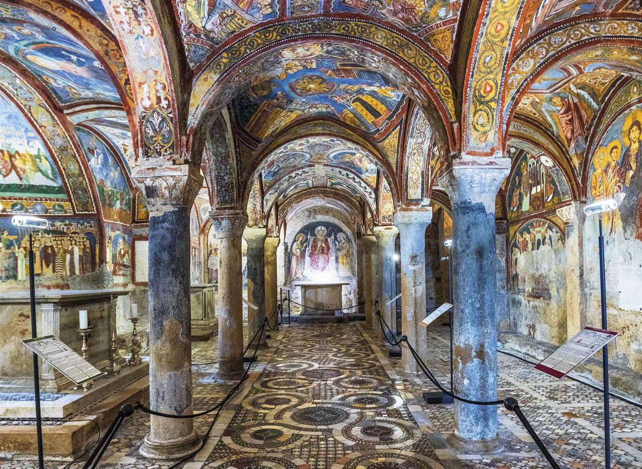 La Cripta de San Magno, denominada la “Capilla Sixtina del Medioevo”, alberga uno de los ciclos pictóricos más extensos y sugestivos de toda Europa: más de quinientos metros cuadrados de frescos ejecutados hacia finales del siglo XII e inicios del XIII. Almuerzo. Por la noche, seremos envueltos por la emoción del Stabat Mater de Gioachino Rossini, interpretado en la majestuosa basílica de San Pablo Extramuros, donde la música sacra tocará las fibras más íntimas del alma.