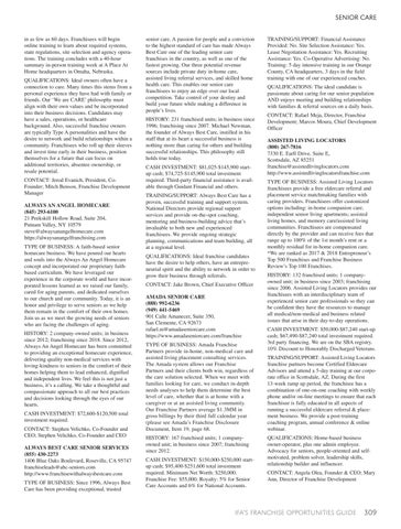 Along with each listing is information about the company’s history, number of units, the cash investment required and the contact person when available. Most franchise offerings feature training, written educational materials and varying degrees of ongoing support.