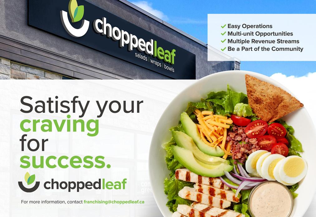 Chopped Leaf is a proudly Canadian restaurant franchise specializing in fresh, betterfor-you meals that are 100% crave-worthy. With a proven business model, ongoing support and no restaurant experience required, franchisees can capitalize on the ever-growing demand for nutritious dining choices. Since celebrating its 15th anniversary in 2024, Chopped Leaf has grown to 123 locations across Canada and the U.S., with more restaurants committed to open. Proudly rooted in quality and convenience, Chopped Leaf focuses on wholesome ingredients and community connections. Guests can eat-in, takeout, or order freshly prepared catering for any occasion.