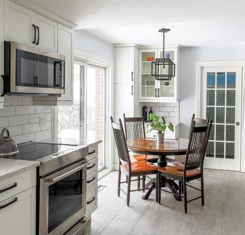 ain-floor remodel: This is a visually striking renovation that is thoughtfully designed for entertaining while respecting the home’s original features and keeping accessibility needs in mind. The kitchen, dining room, living room, sunroom, powder and laundry room were reimagined, with the fireplace relocated to open the kitchen and take advantage of the connection between the sunroom and dining/living space. This project is a prime example of how accessibility can be seamlessly integrated without compromising on design or beauty. Before