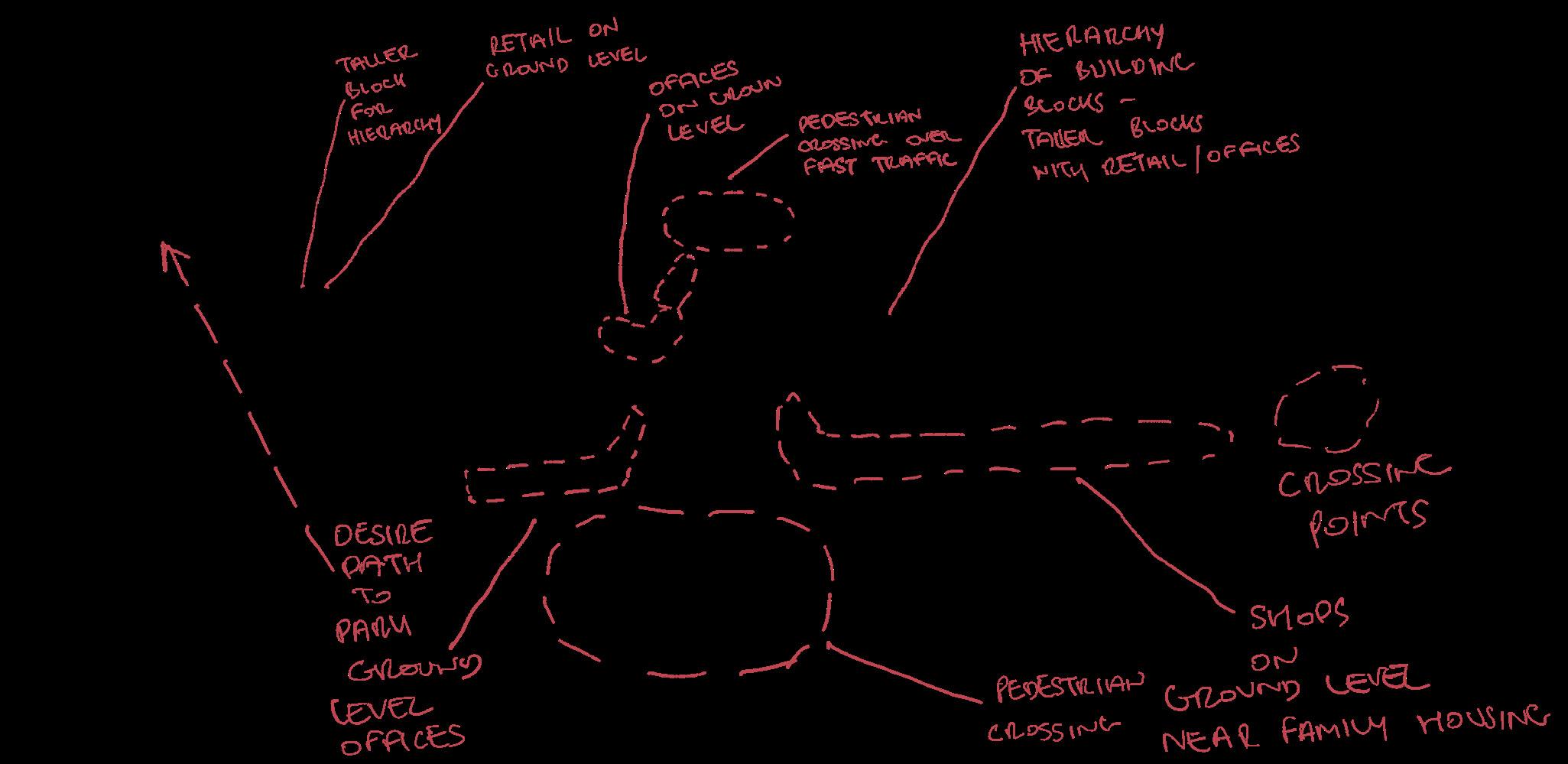 The land now available for development will go towards housing, commercial and retails spaces. These taller blocks will act as a barrier to the motorway from the remaining of the community reducing the impact of sound, smoke and light pollution.