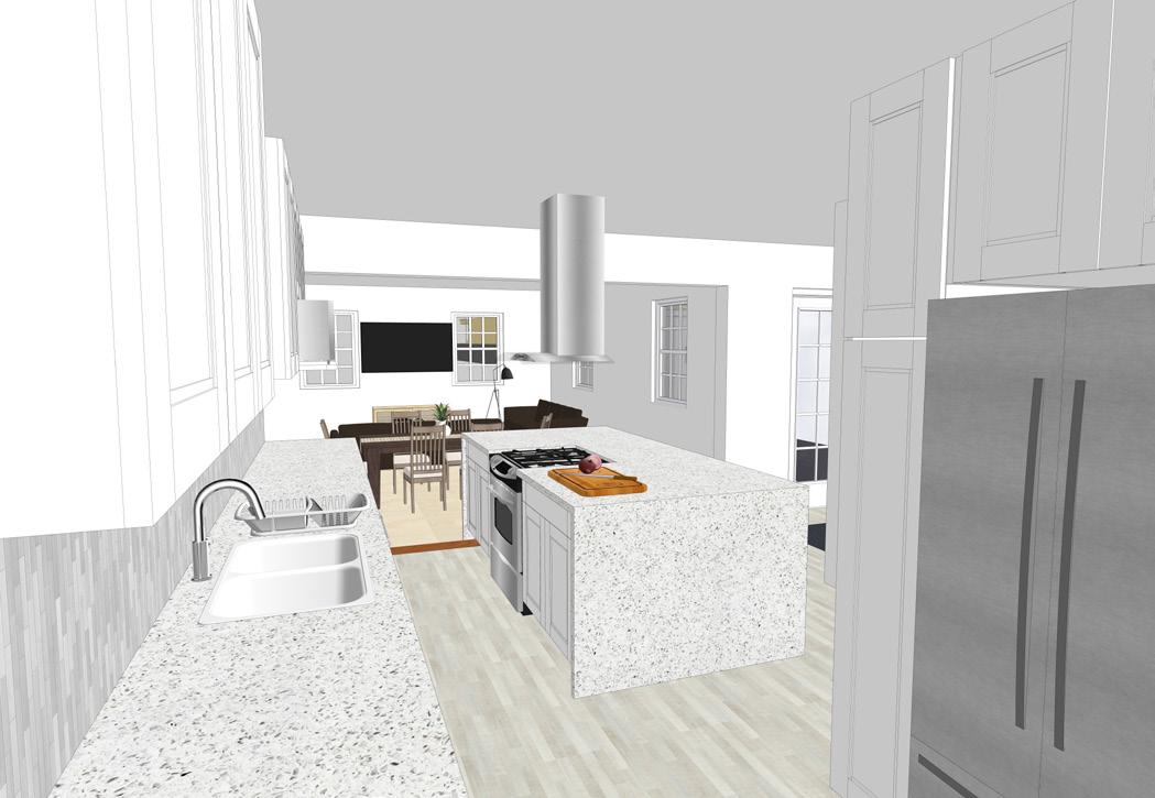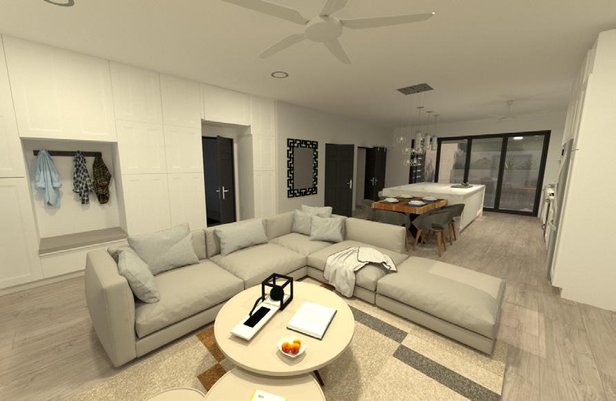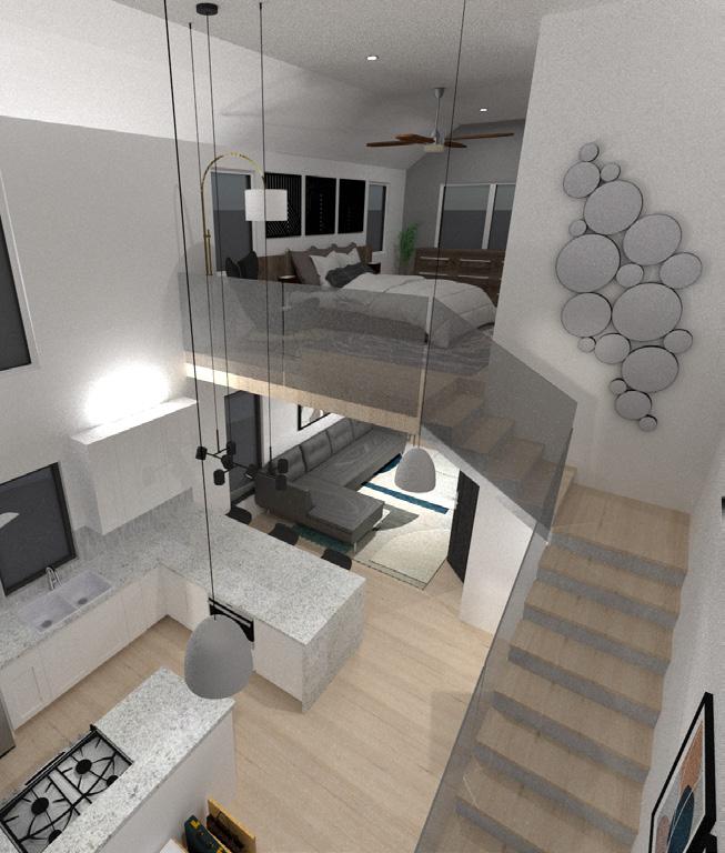 The Wreck Road freelance project was initiated with a request from the client to generate multiple proposals for the existing house to be altered to gain an income unit and provide a better layout and flow through the ground level. Out of the three different layouts created, a 3D model was created from the selected option (as seen above). In order to have the increased building mass of the income unit and still maintain majority of the green space on the property, the concept of a green roof was introduced to provide undisrupted yard access and views from the main house to the lower northern yard and open space. Whilst this method of roof construction is not common in Bermuda, it has been used in newer large-scale projects which will act as a precedant during the Planning Application process.