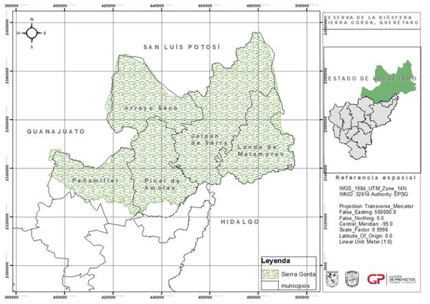 Imagen 1. Mapa de la reserva de la biosfera, Sierra Gorda, Querétaro.