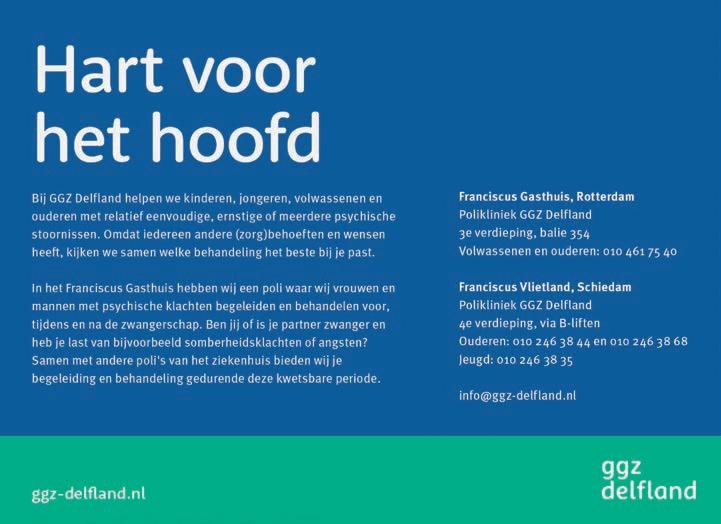 Voorwoord samen 01 Colofon PRODUCTIE EN EINDREDACTIE Afdeling Marketing & Communicatie Franciscus Gasthuis & Vlietland Postbus 215 3100 AE Schiedam communicatie@franciscus.nl 010 - 893 4110 BLADMANAGER EN VERKOOP Barbara Verschoor • 06 - 455 766 70 VORMGEVING MAGAZINE Hannique de Jong Nanno van Leeuwen