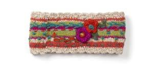 Our best selling Lassen design featuring a beanie, headband, and handwarmers, is adorned with crochet flowers and feather stitch embroidery on a base of colorful stripes. The ensemble is completed with a scalloped edge, and the set is fleece lined for warmth and comfort.