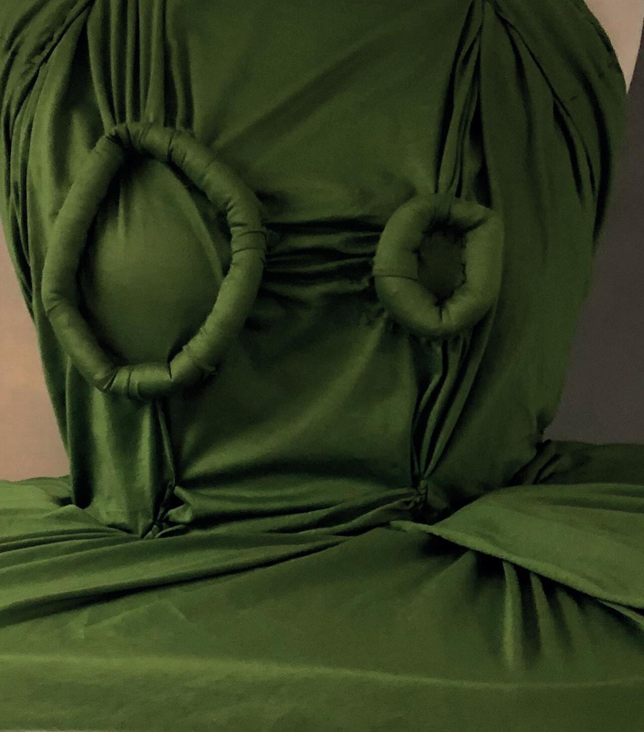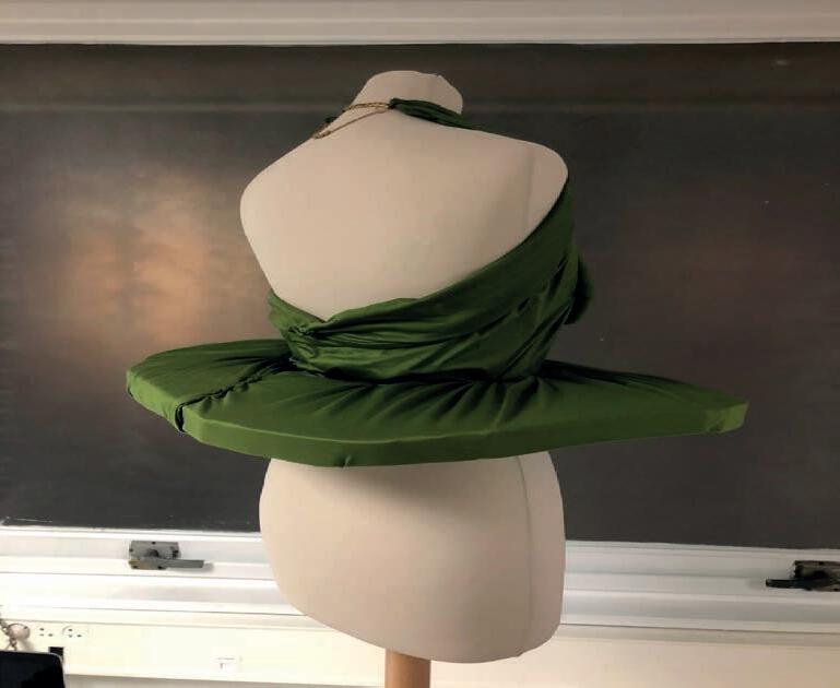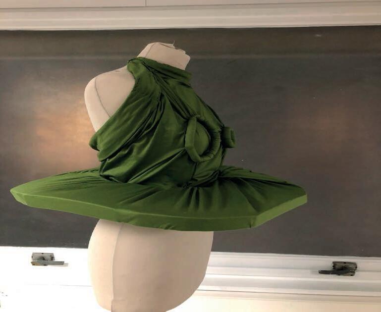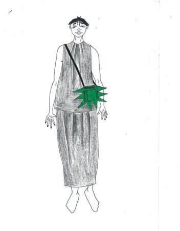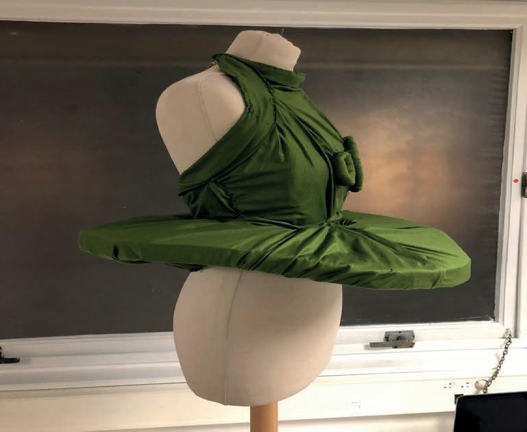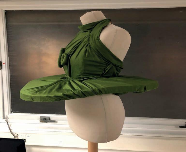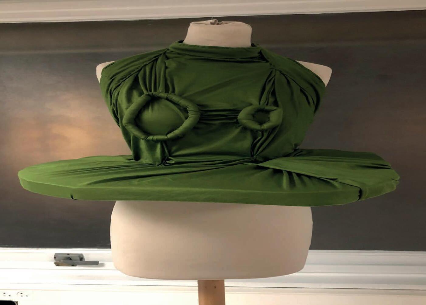 Pendant ma première année, nous avons eu un devoir qui consistait, avec 3 mètres de tissu fournis par l’école, à ne couper la matière que 3 fois et à créer une robe. J’ai conçu cette robe en intégrant du rembourrage pour former une «table» intégrée au vêtement.