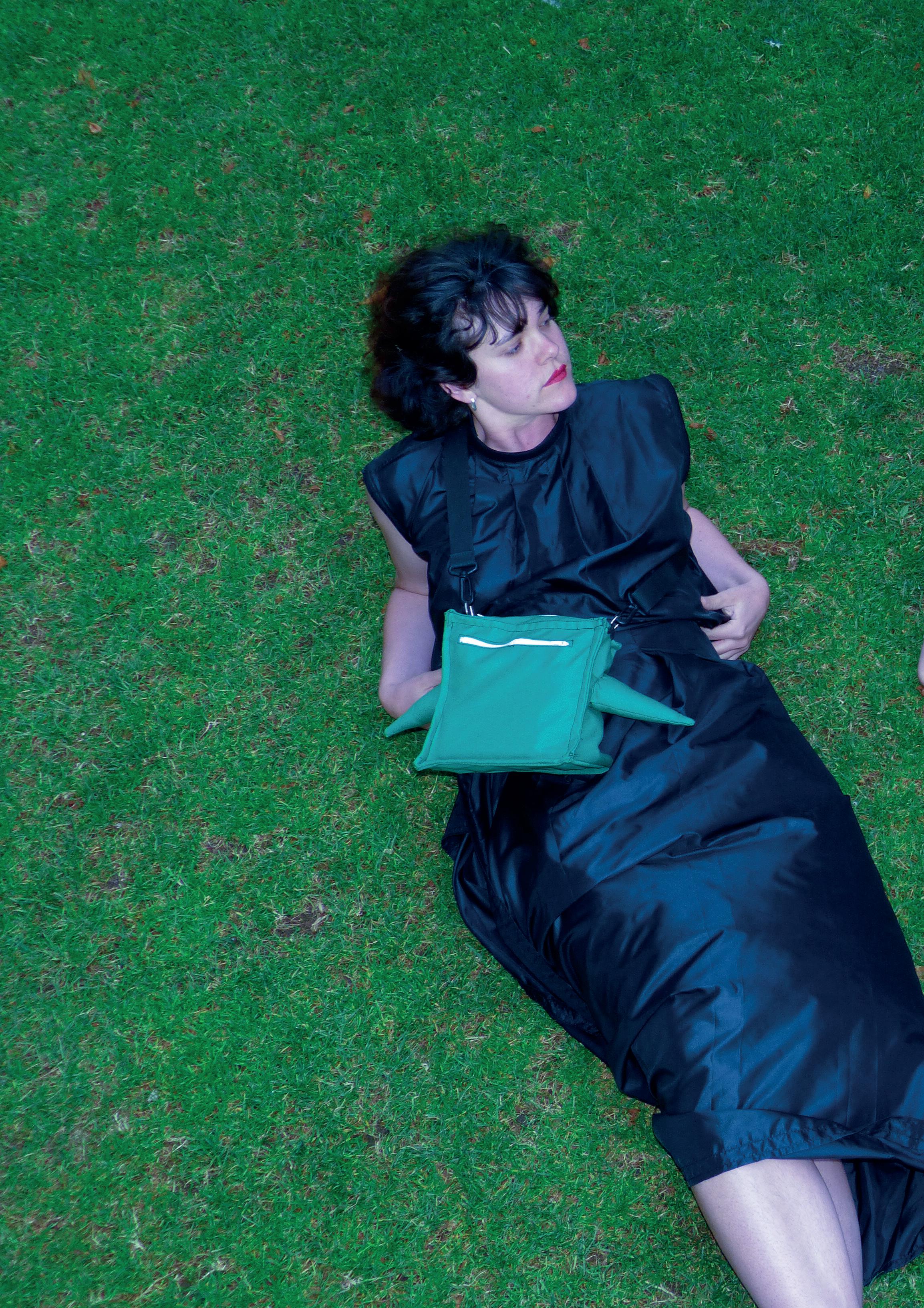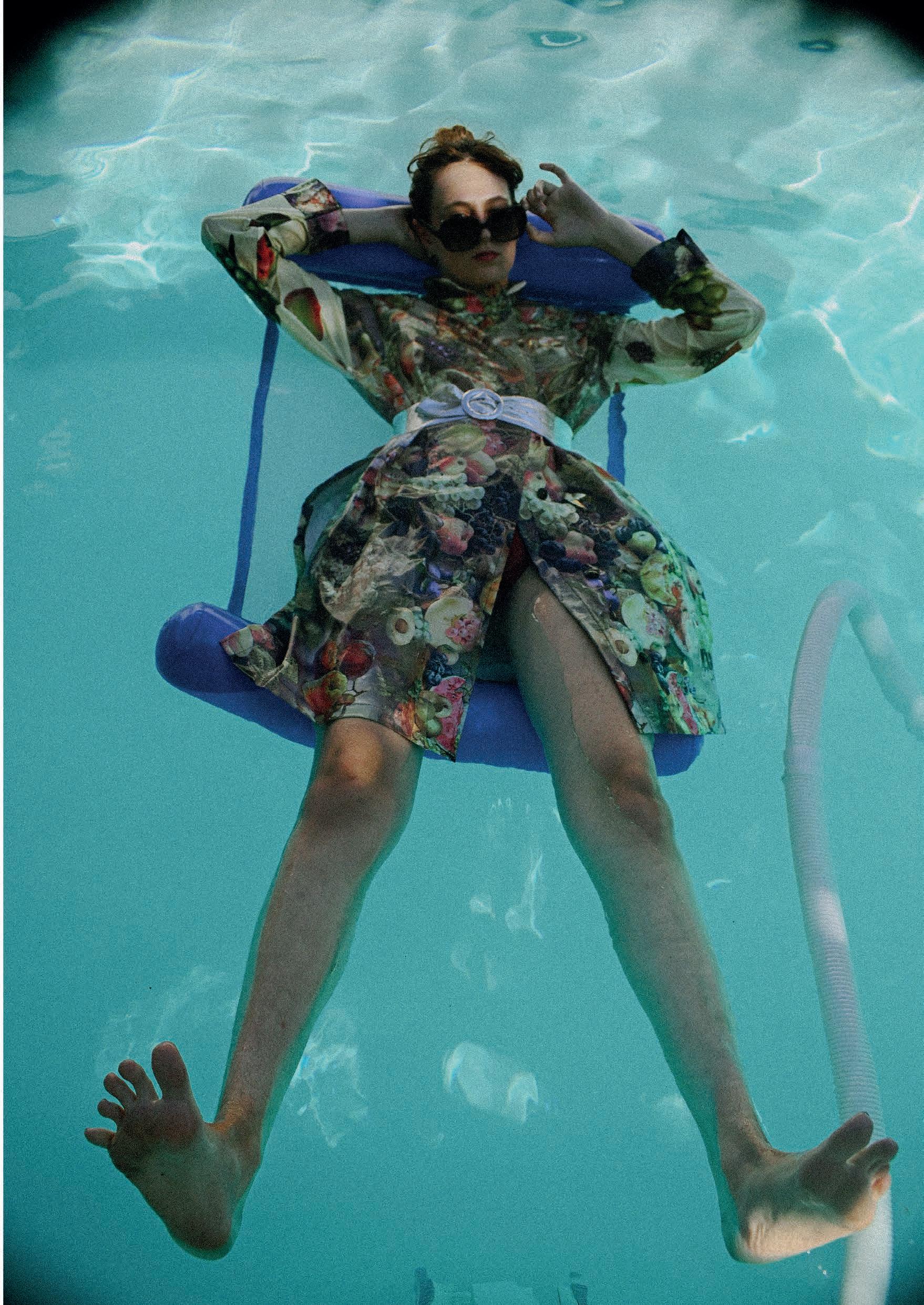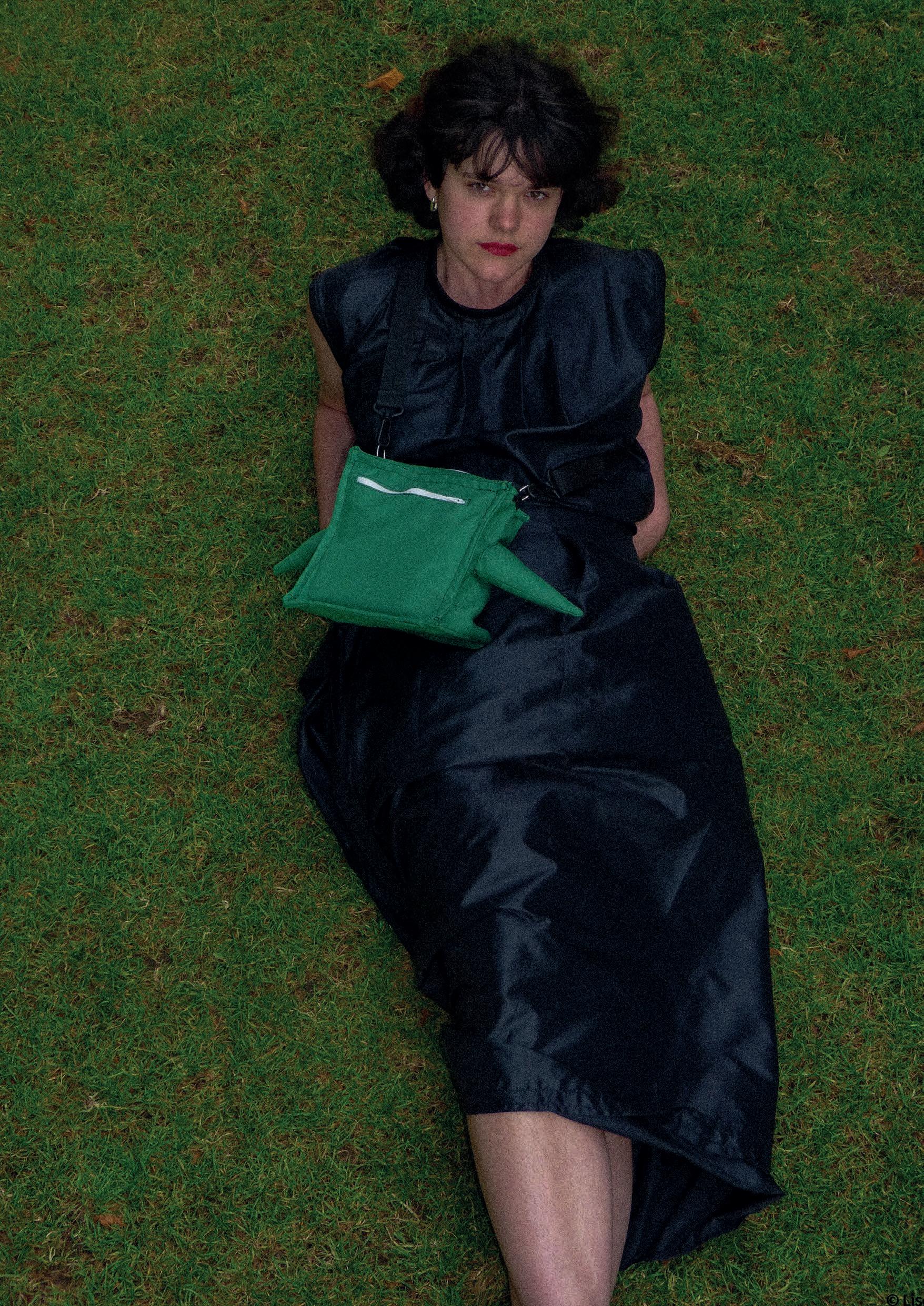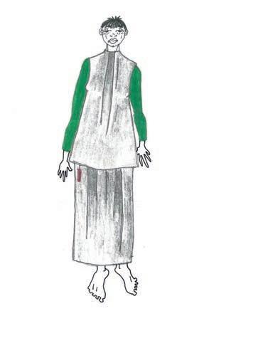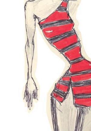 Pendant ma première année, nous avons eu un devoir qui consistait, avec 3 mètres de tissu fournis par l’école, à ne couper la matière que 3 fois et à créer une robe. J’ai conçu cette robe en intégrant du rembourrage pour former une «table» intégrée au vêtement.