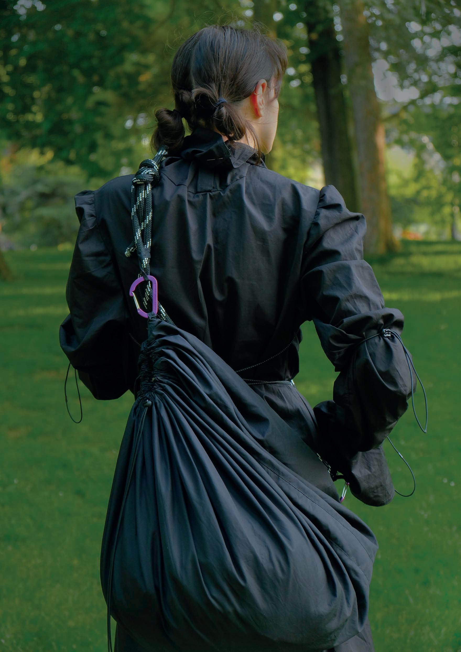 Voici les deux line-ups, l’un axé sur la modularité et l’autre sur les plis. J’ai utilisé du nylon en ajoutant une étiquette en caoutchouc. J’aiadopté un code couleur correspondant aux objets vendus par la marque.