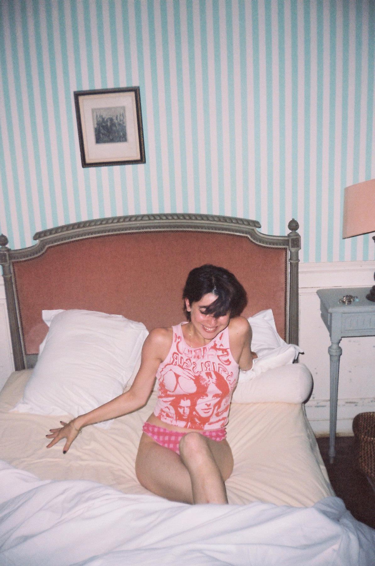 Durant notre deuxième année, nous avons eu la chance de travailler en collaboration avec Decathlon. Nous devions réaliser les dessins techniques et motifs pour leur nouvelle enseigne dédiée au foot urbain. J’ai choisi le thème de la jet set du sud et j’ai créé plusieurs pièces avec des motifs chaînés et exagérés.