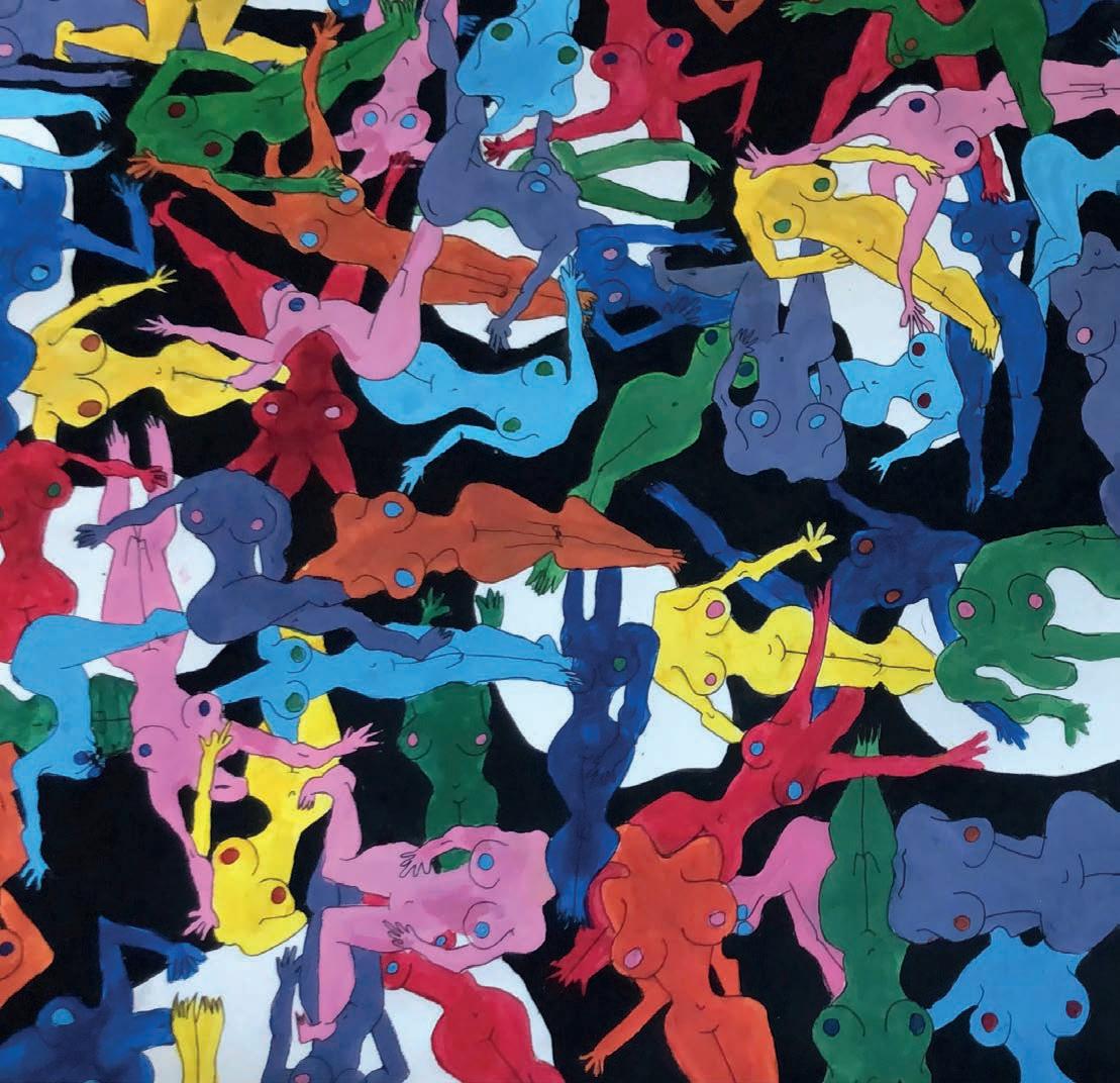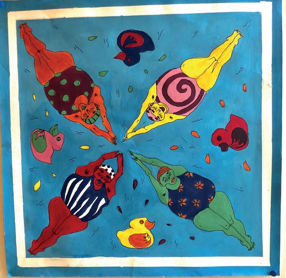 Je me suis inspiré de l’artiste plasticienne Nikki de Saint Phalle et de ses corps féminins voluptueux pour réaliser mes deux carrés, en uttiisant de la gouache.