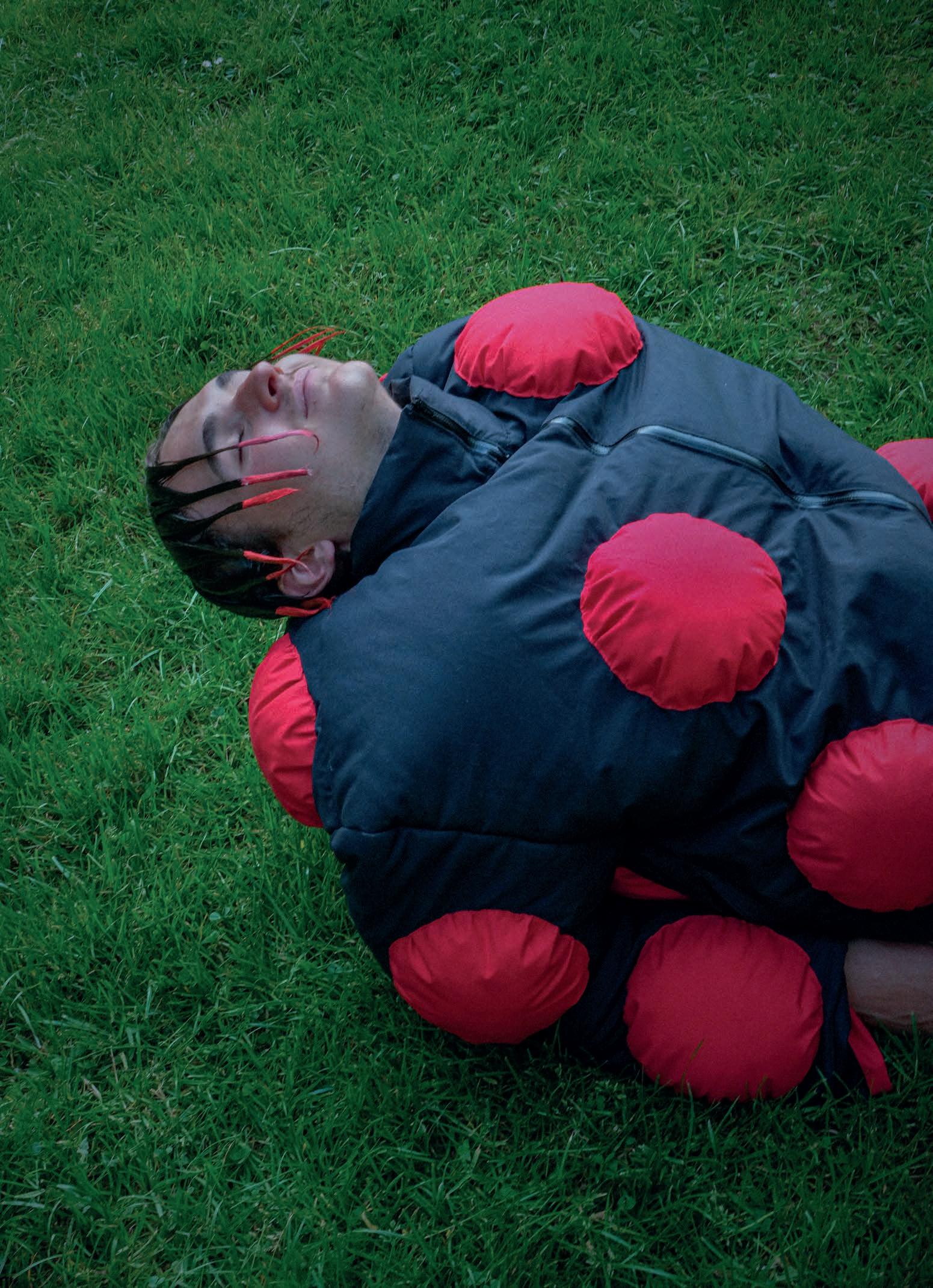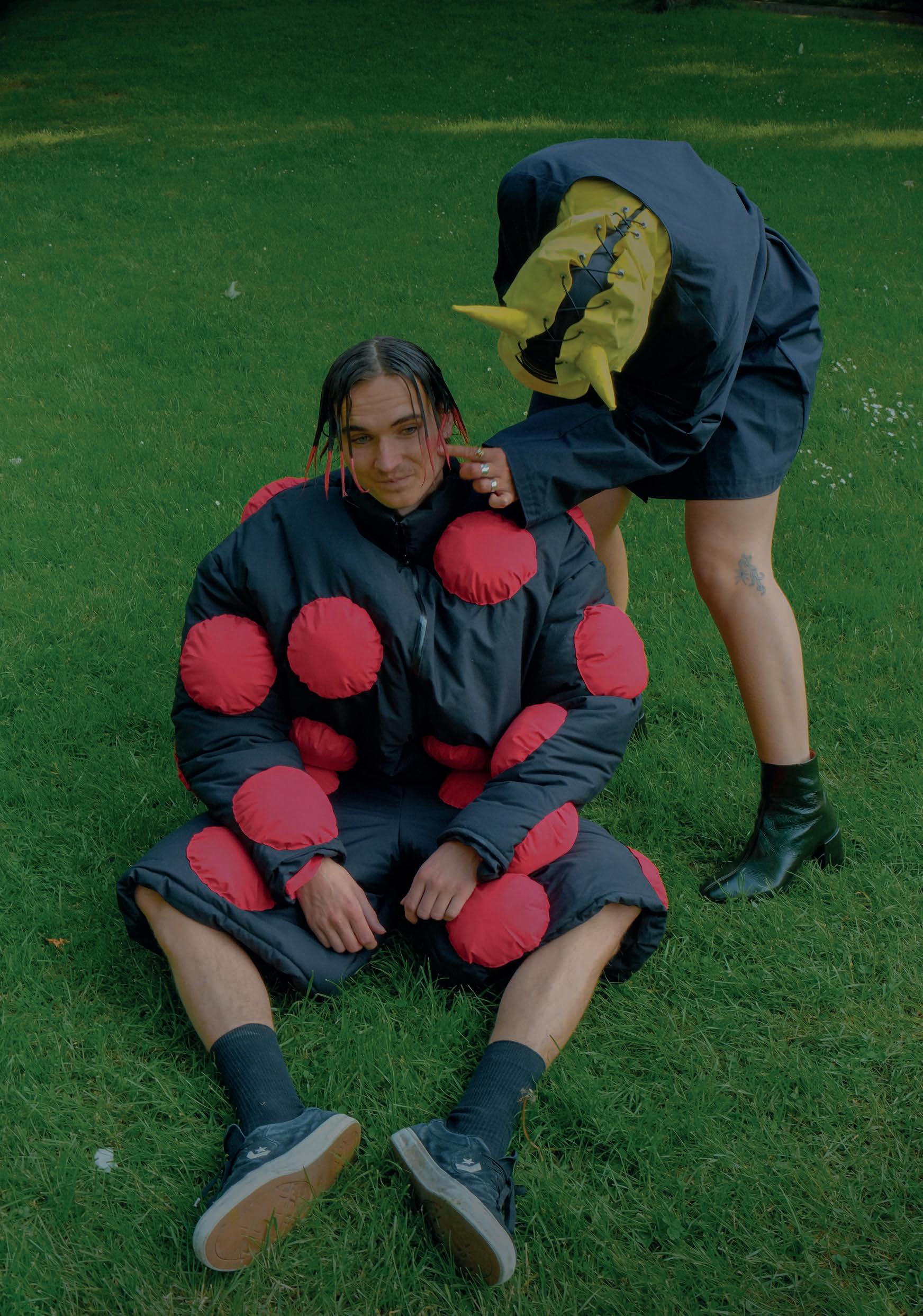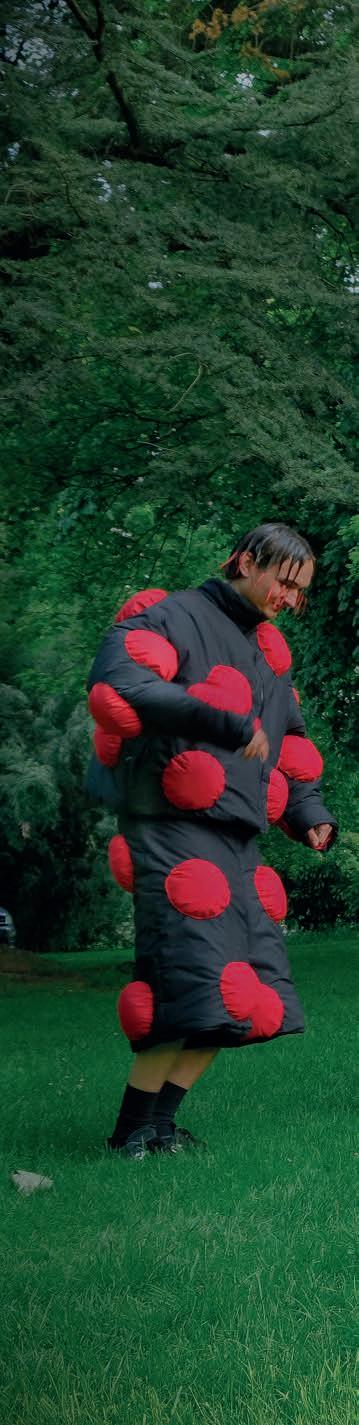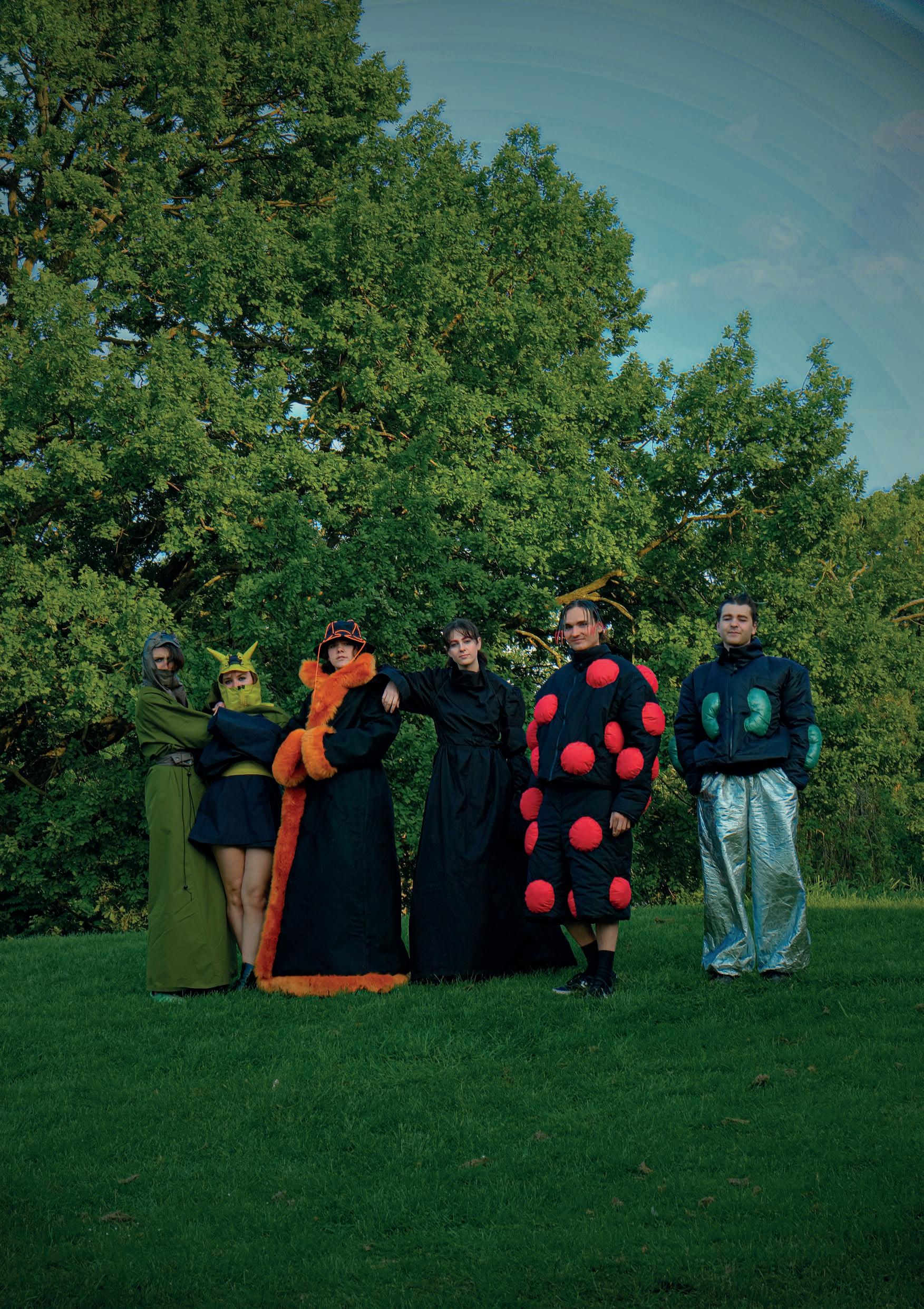 Durant ma troisième et dernière année de Bachelor, le défi était de concevoir une collection entière avec un thème libre. J’ai choisi d’explorer le thème des insectes en mélangeant un univers coloré et extravagant avec de fortes inspirations techwear. J’ai donc réalisé, d’abord en toile puis en tissus finaux, 6 silhouettes avec des accessoires. Vous trouverez plus haut les QR codes et liens menant à mes dossiers (style, photoshoot, techniques, marketing).