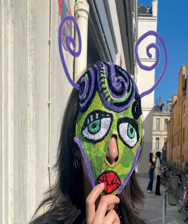 J’ai réalisé plusieurs masques et structures avec des matériaux tels que le papier mâché, l’aluminium, le fer (soudure), la céramique, la broderie, etc.