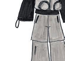 Le projet qui a clôturé ma deuxième année de Bachelor avait pour intitulé «Seconde Line». Nous avions comme consigne de choisir une marque existante (vêtements ou autres) et d’inventer une seconde ligne consacrée aux vêtements. J’ai choisi la marque Fatboy, qui crée des meubles design et modulables. J’ai donc conçu 2 tenues, dont une modulable, avec un accessoire.