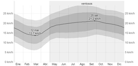 Lavelocidadpromediodel vientoporhoraenCatacaos tienevariaciones estacionalesconsiderables eneltranscursodelaño.