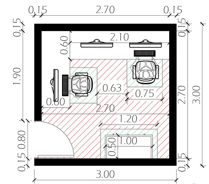 NEUFERT Ladistanciaenestecasocondos personastrabajandoserá entre1,10y1,20m.deseparación.
