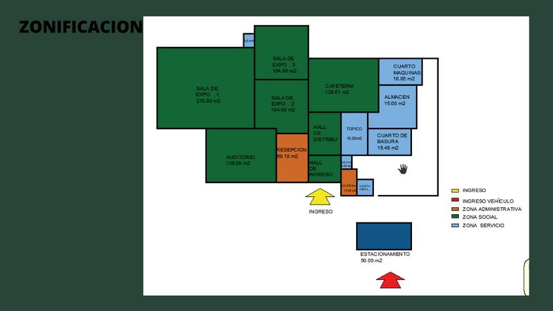 Se encuentra la boletería, servicios higiénicos para visitantes,teniendo un recorrido directo hacia el ingreso del museo. Losdemás espacios corresponden al Área Administrativa, donde serealizan las diligencias del personal autorizado, el cual cuentacon servicios y un ingreso independiente