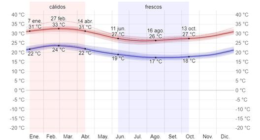 EnCatacaos,losveranossoncálidos, opresivosynublados;losinviernosson largos,cómodos,ventososymayormente despejadosyestásecodurantetodoelaño. Duranteeltranscursodelaño,la temperaturageneralmentevaríade17°Ca 33°Cyraravezbajaamenosde16°Cosube amásde34°C.