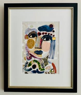 Het werk is uitgevoerd in een gemengde techniek op geschept papier, wat het een unieke uitstraling geeft. Met een afmeting van 20 cm bij 15 cm is het een intiem kunstwerk, zorgvuldig ingelijst en voorzien van museumglas voor optimale bescherming. De lijst versterkt de presentatie van het schilderij, terwijl het glas zorgt voor UV-bescherming en een langere levensduur.