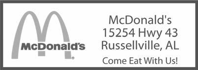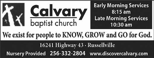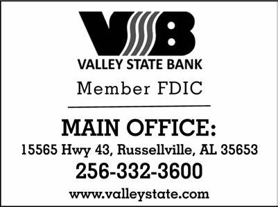 theBoardof Directors including communityleaders,system volunteers,alumni, educatorsand business leaders. We’re invested in YOU. BIBANK.COM MEMBERFDIC Russellville -Moulton -Red Bay •Comprehensive EyeExams forAdults& Children •Contacts and Glasses •Eye Injuries and Emergencies •Designer and SafetyFrames •Sunglasses EyeCare Professionals 256-332-5440 www.eyecareprofessionalspc.com MostInsurances Accepted $39.00* First VisitSpecial Morgan Chiropractic Chiropracticforthe EntireFamily OfferexpiresJune30,2024. See EDUCATION BANQUET, Page A7