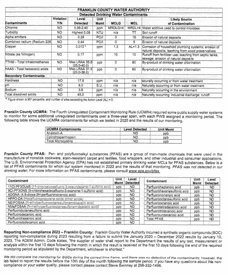 Franklin CountyWater Service Authority, located in Russellville, Alabama, is requesting responses fromqualified bidders fortheacquisition of anew raw waterturbineandallassociated equipmentand installation for theAuthority’sWaterTreatment Plant.The turbine and submersible motorshallbea 14RHHC Goulds3-Stagepump with 200HPSME submersible motor. No otherpumpormotor manufacturersshallbeaccepted.