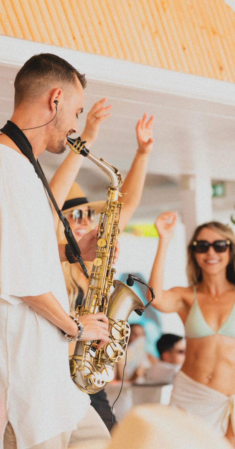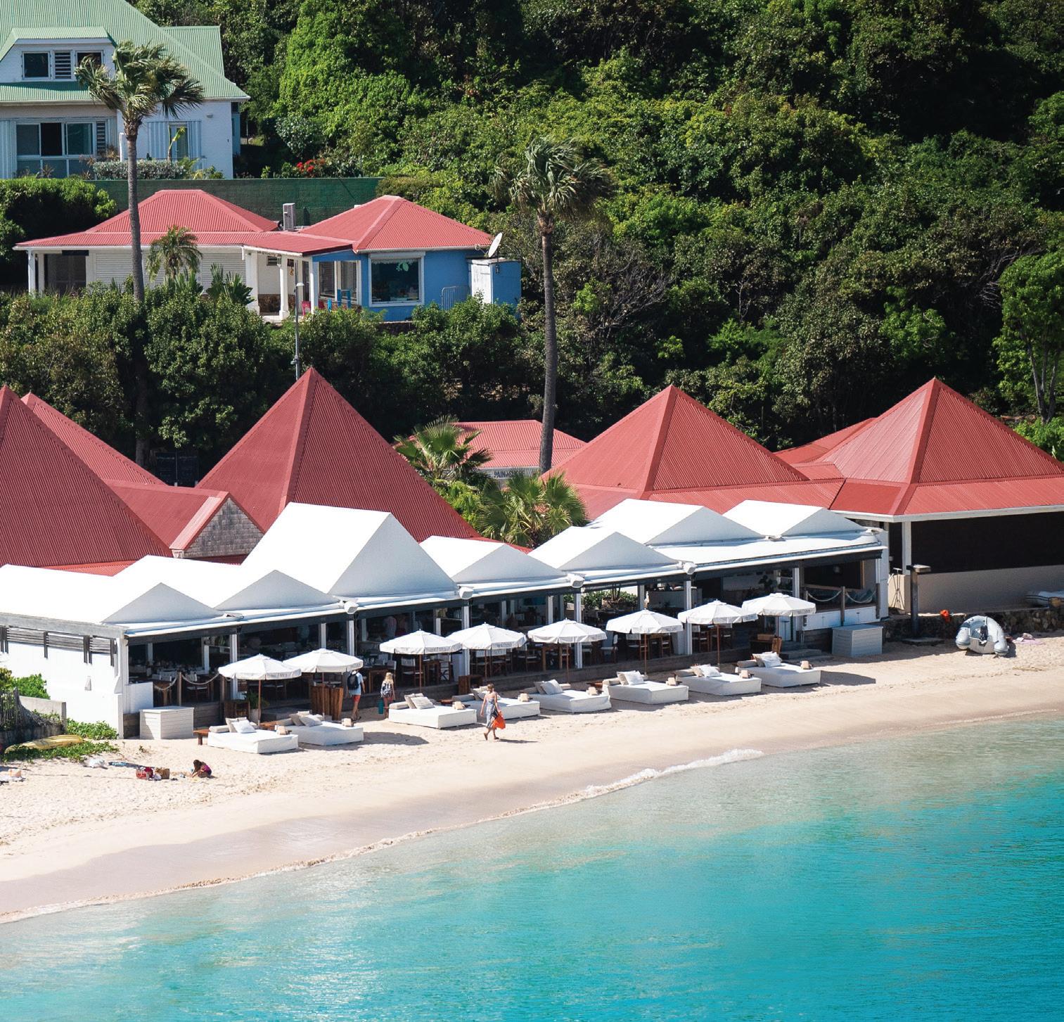 THE CARIBBEAN EXTENSION OF THE NIKKI BEACH brand is the epitome of barefoot luxury. Located on the idyllic Saint-Jean Beach, Nikki Beach Saint Barth is a sea of all-white sun beds and signature teepees. The globallyinspired menu, crafted by Corporate Executive Chef Alessandro Pizza, features fresh local ingredients and tempting dishes from sushi rolls to coastal cuisine, paired with a curated international wine list. The beach club is open 10:30 AM–7 PM, while the restaurant welcomes diners 12 PM–5 PM. The buzzing venue, which is known for its music and entertainment, also hosts private events from romantic dinners to weddings set against panoramic ocean views.