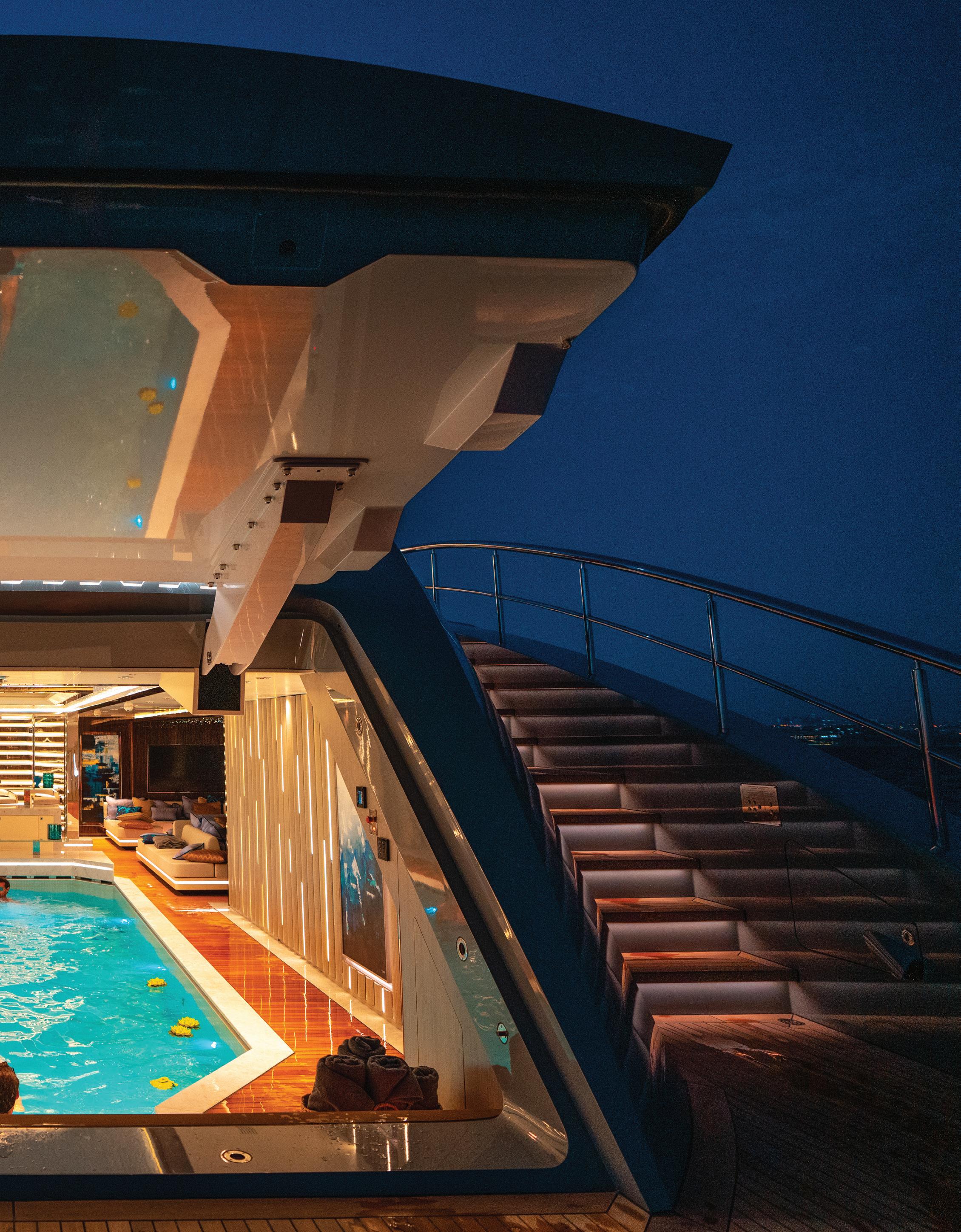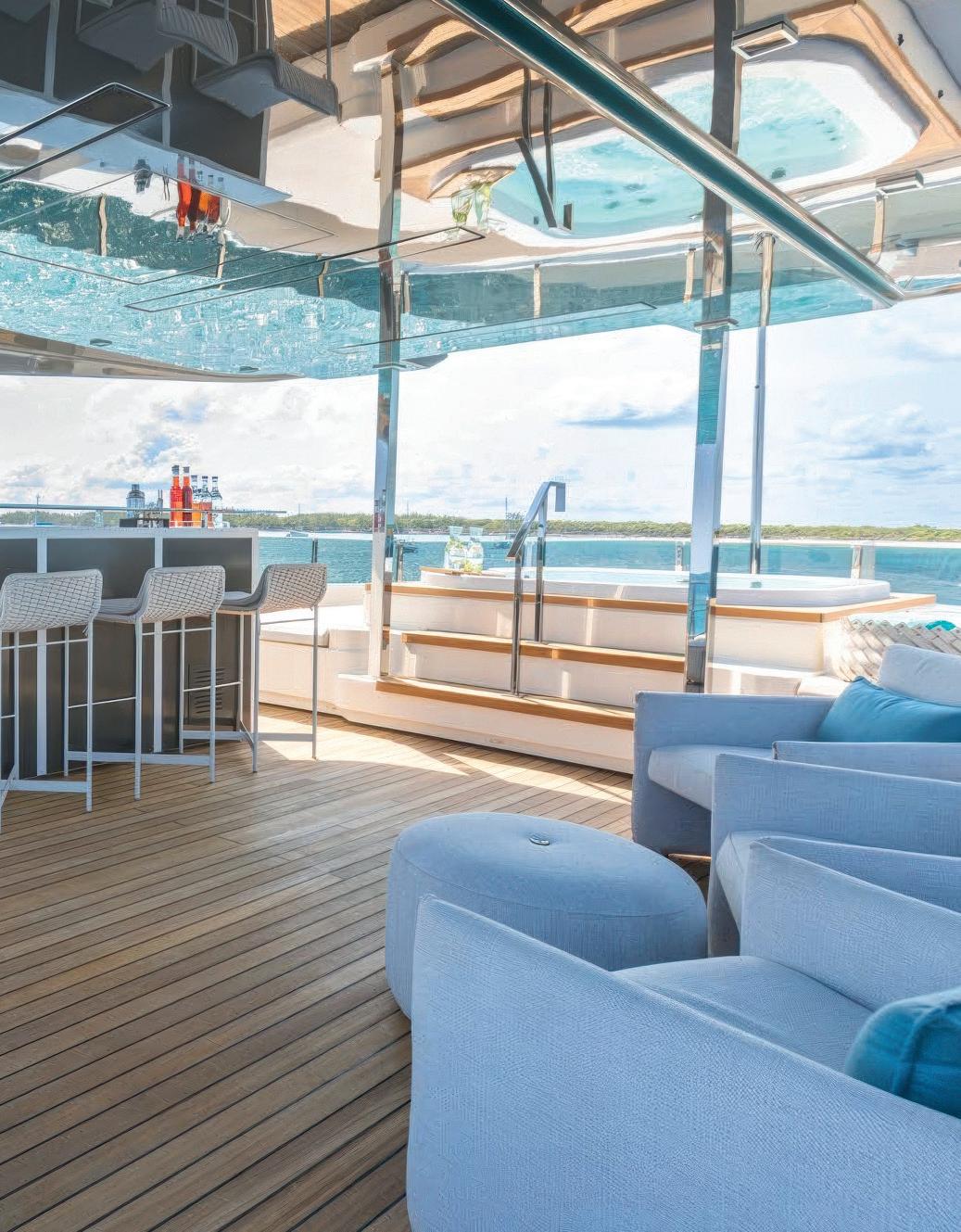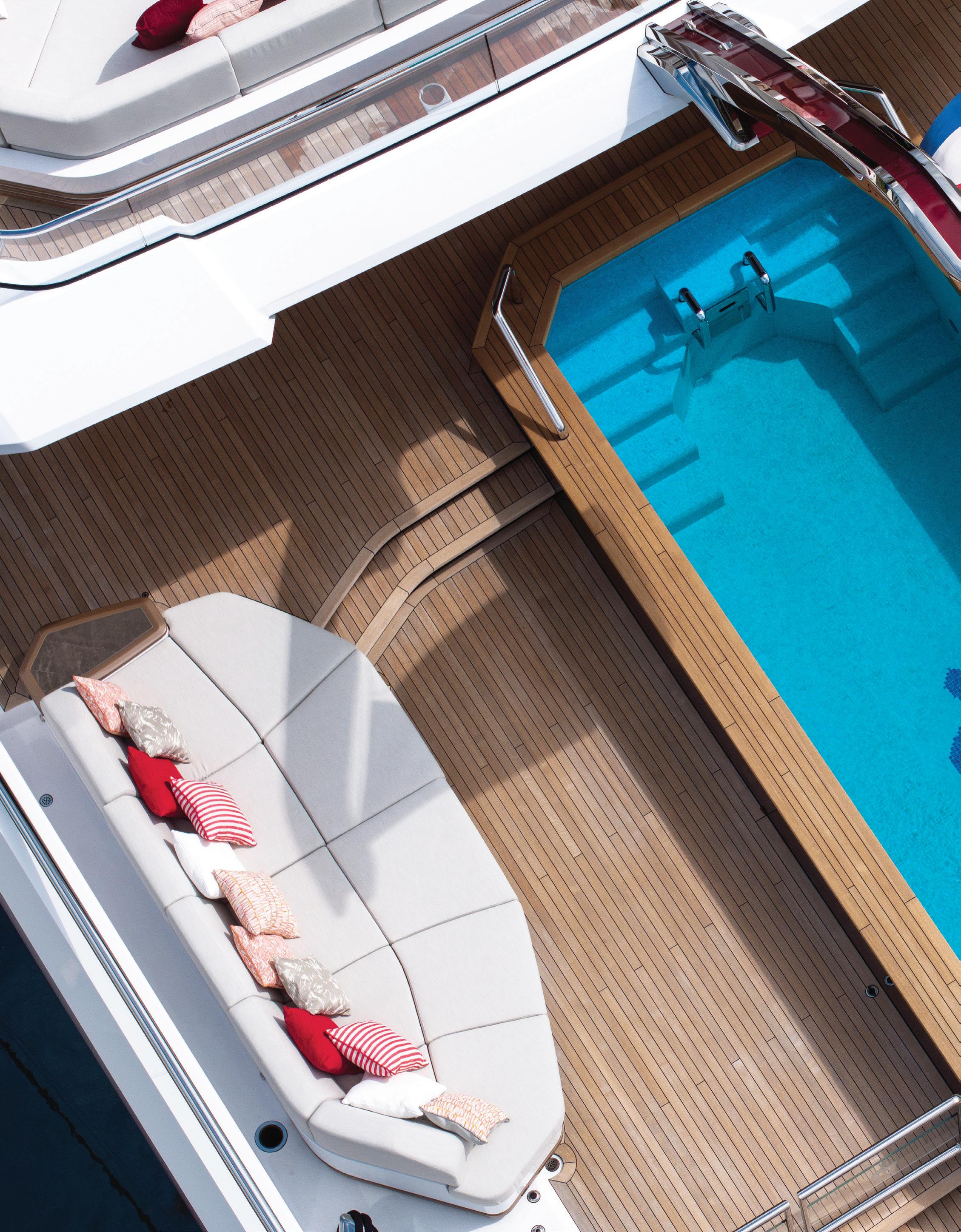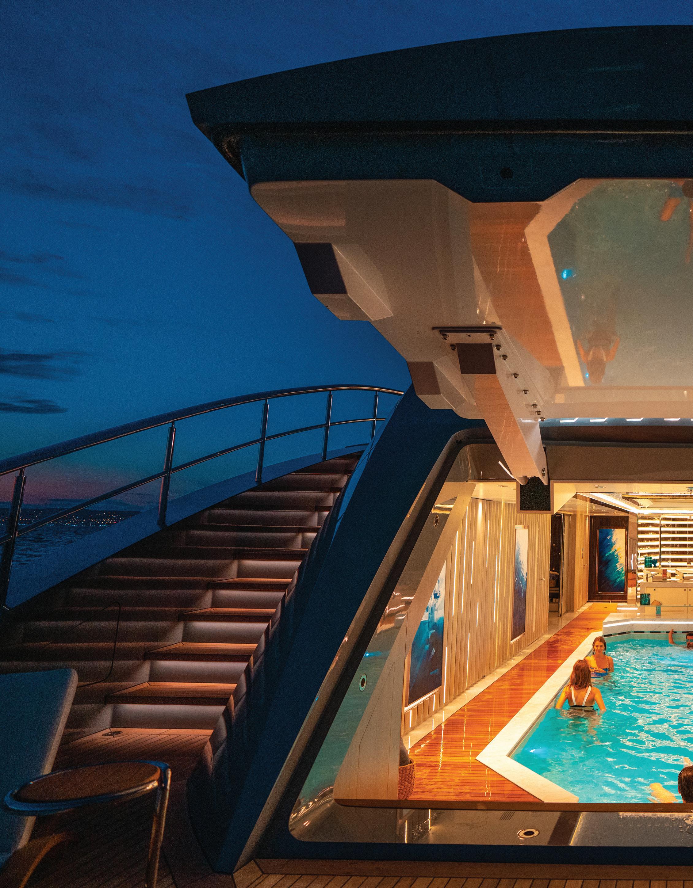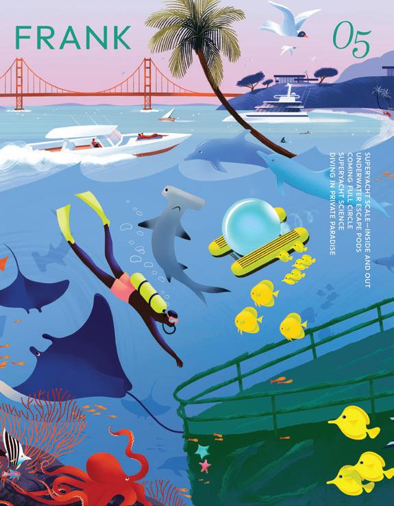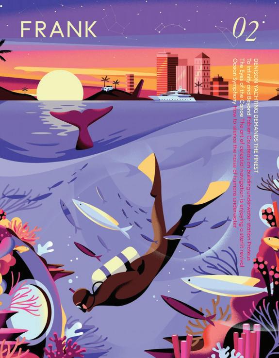 PAGE 120 on the rebirth of Fort Lauderdale’s iconic Pier Sixty-Six was as fun to write as it was to experience. Rachel Ingram investigates the best pools on superyachts in COOL POOLS , PAGE 76 . Jill Bobrow pays homage to a legendary Italian shipyard that has formed a special relationship with Denison Yachting in FROM ITALY WITH LOVE , PAGE 56 , and profles a world-class yacht chef in CHEF DU JOUR , PAGE 38 . Our charter feature explains what makes the 121-foot Custom Line EROS such a special Caribbean Charter yacht in FEATURED YACHT CHARTER: EROS, PAGE 64. This issue also features two fashion stories that combine coolness and classic elegance in very special ways. So please. Do yourself a favor. Kick back. Relax. And give yourself a little break from the everyday here with FRNK Issue 10. You deserve it.