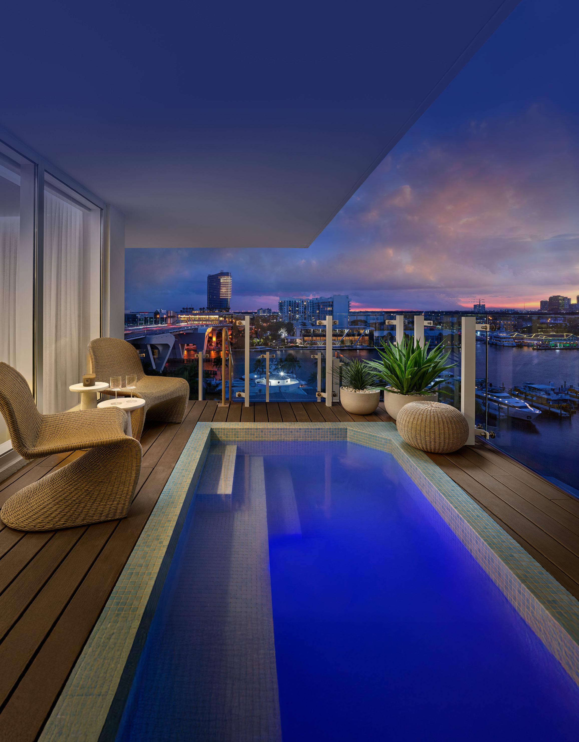 in price from $3.85 million to $15.5 million. And, oh yeah, the 31 Pier Sixty-Six Indigo condos are the frst buildings in Fort Lauderdale to ofer a private plunge pool in each condo residence.