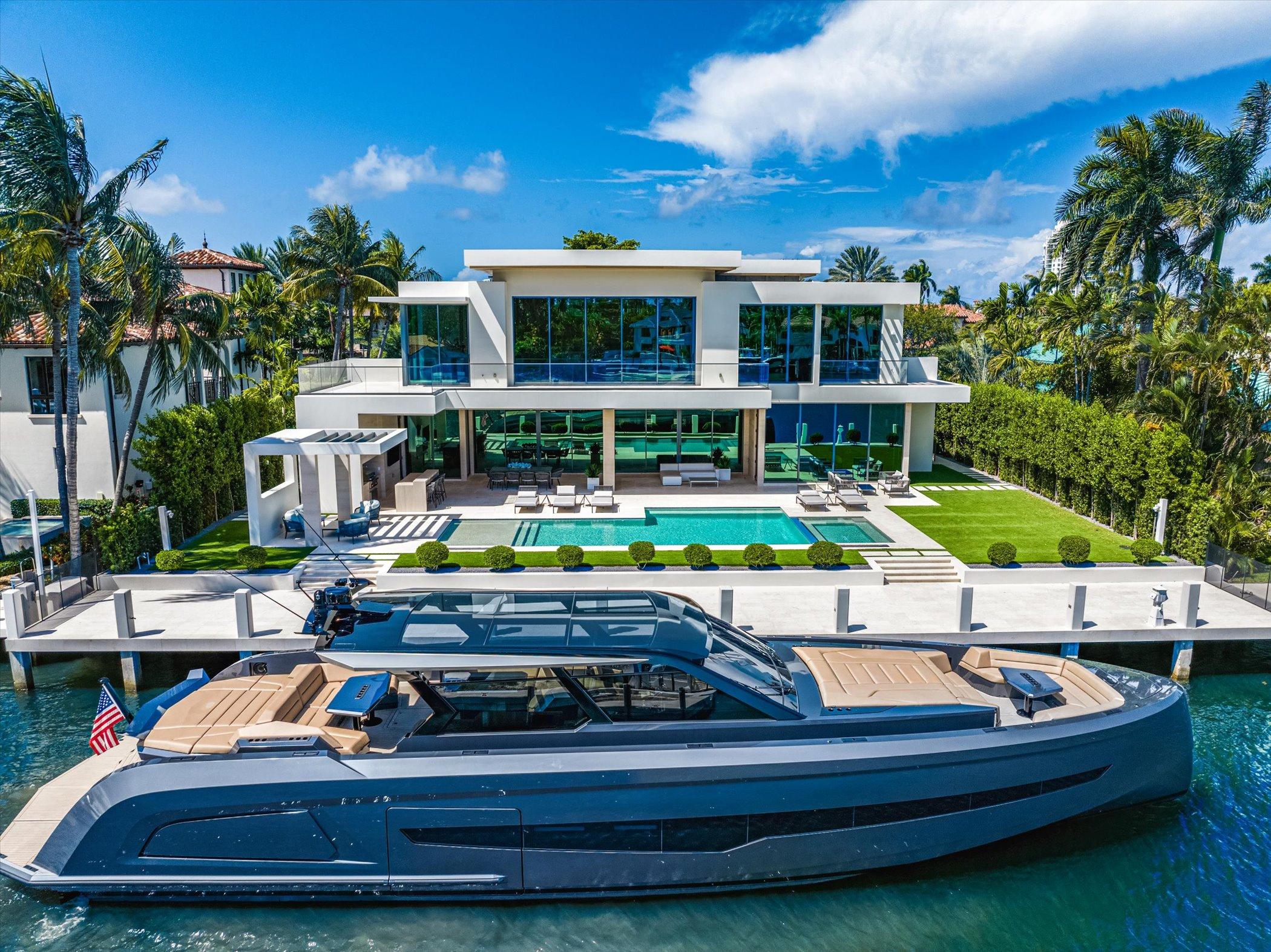 Spare and elegant, this home is only missing two key elements: One is a new owner. The other is a yacht for the elegantly designed dock that waits along the canal.
