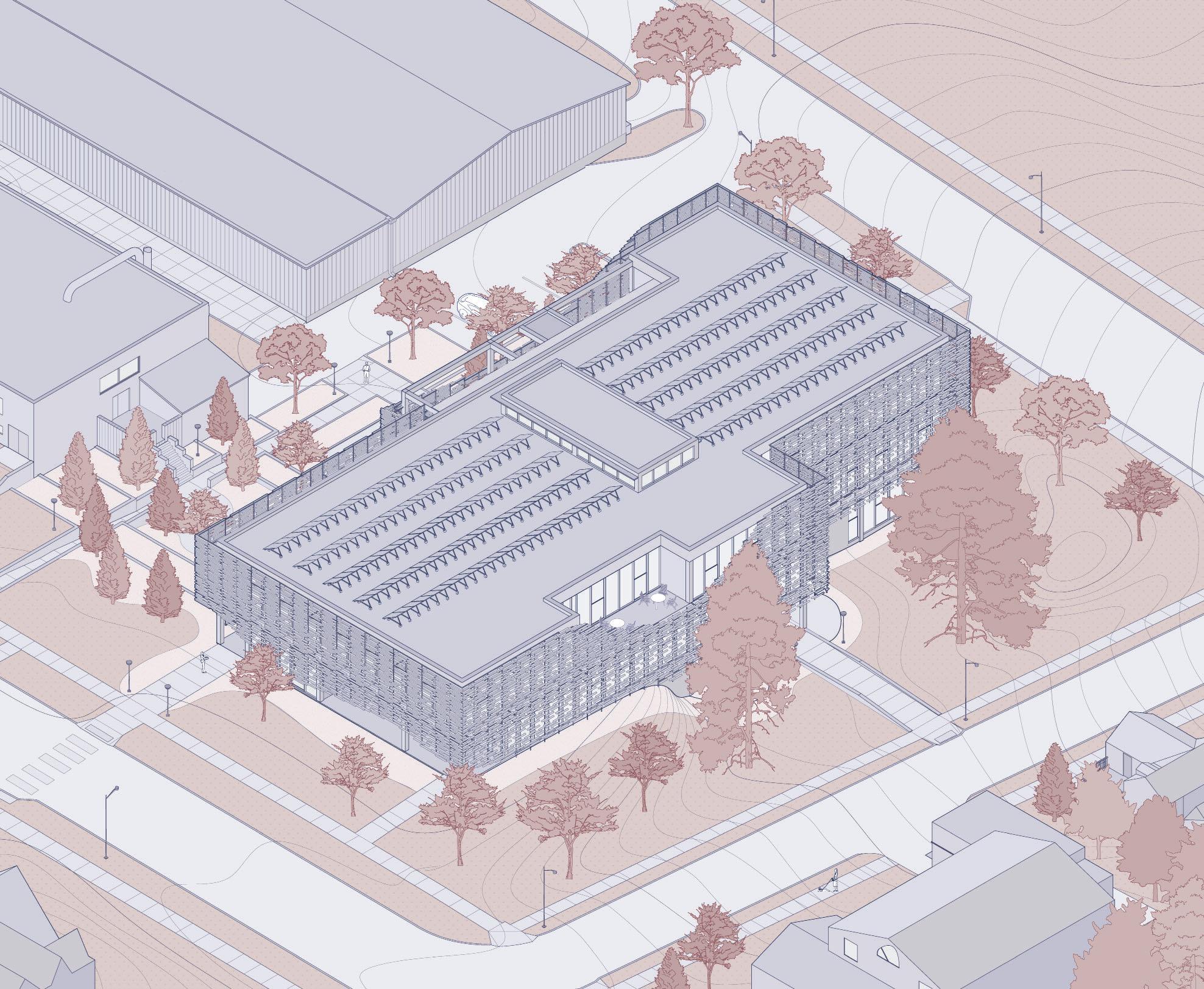 This project aimed to restore the beatuy and life to this historic site, drawing in new people from the surrounidng neighborhoods with a modern design that pays tribute to the hertiage of the area. The community center is intended to act as a modern agora; a place for gathering and interacting with members of the community, and for growing alongside them.
