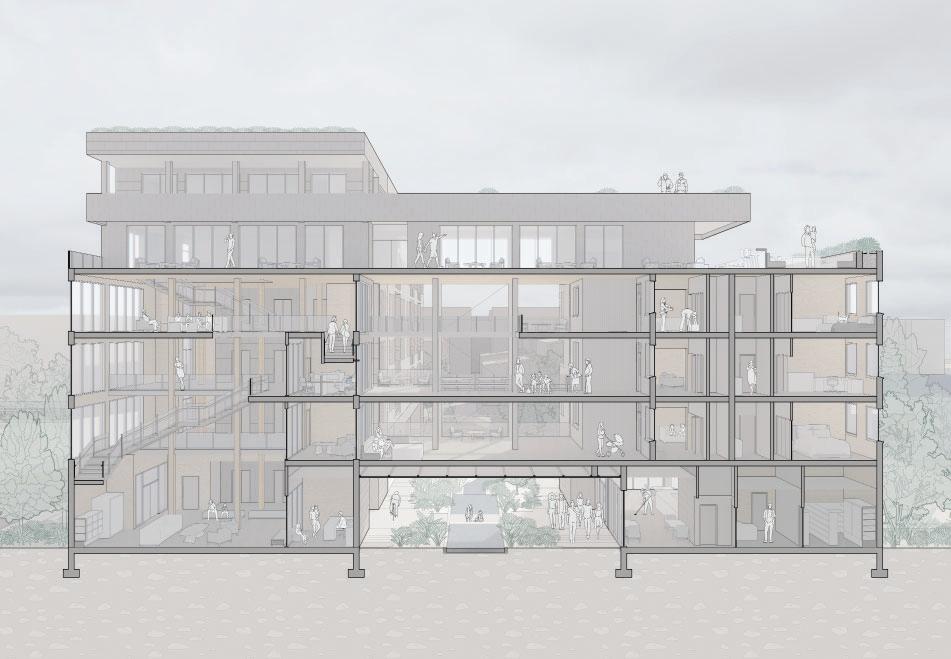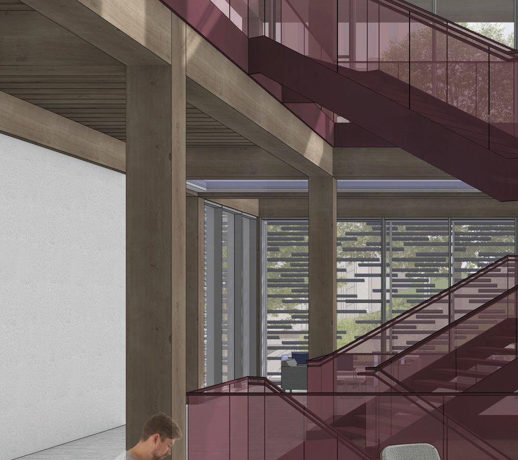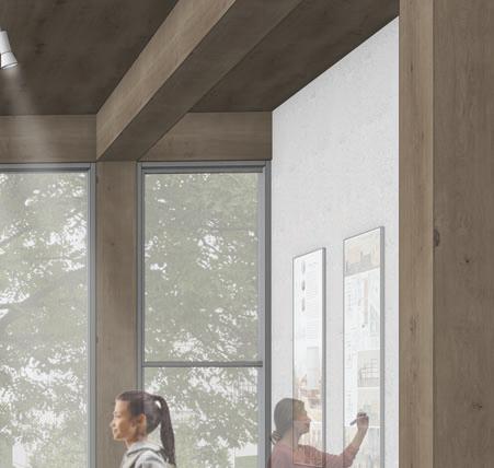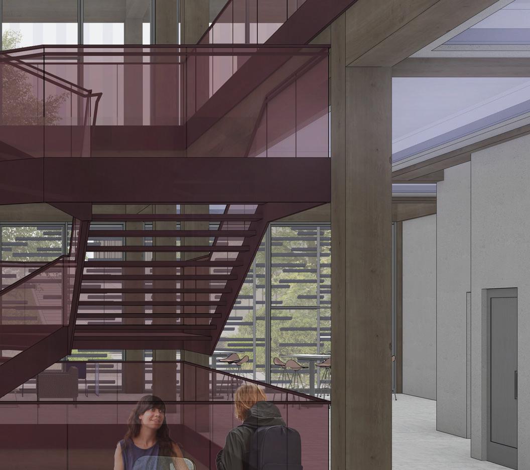This project centers around a new Department of Architecture (DoArc) at the Kansas City Art Institute in Kansas City, Missouri, a mass timber structure with a curtain wall envelope and double-skin facade made of terra-cotta baguette panels.