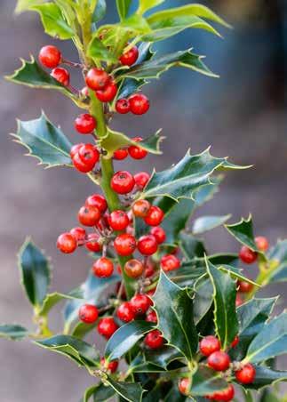 Evergreen trees such as Hollies (Ilex) provide attractive leaves and berries. Conifers such as Pinus, Picea and Abies come in many shapes and sizes, some naturally dwarf, others impressive