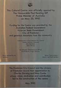 2. Frankston Arts Centre was officially opened by the then Prime Minister, the Honourable Paul Keating. (Cube 37 was opened in 2001 by the then Prime Minister, the Honourable John Howard.)