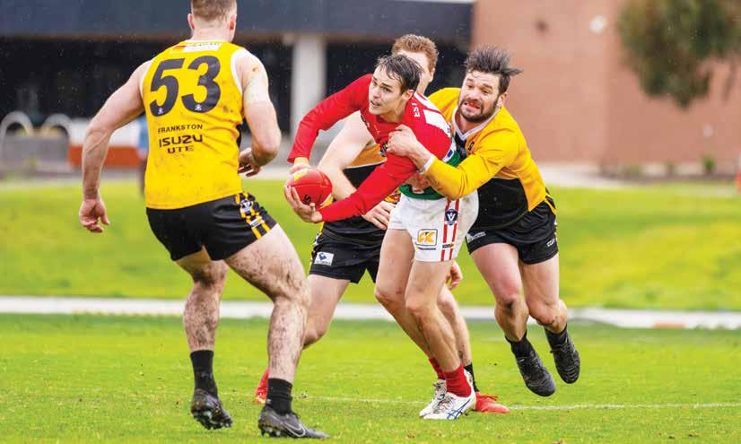 At Lloyd Park, Red Hill claimed a scrappy win over Langwarrin in difficult conditions. The Hillmen beat Langwarrin 3.7 (25) to 4.9 (33).
