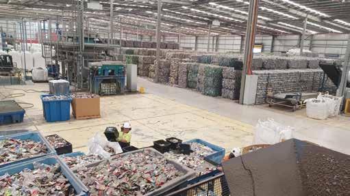 Aluminium cans are bailed before being shipped overseas to be reprocessed into aluminium coils. These are returned to Australia where they are used to make new drink cans.