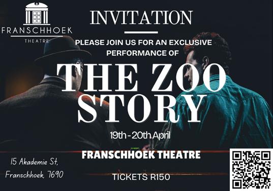 US playwright Edward Albee’s debut one-act play is coming to the Franschhoek Theatre on 19 & 20 April. It stars François Immelman and Michael MacKenzie – Paarl and Franschhoek residents, respectively.